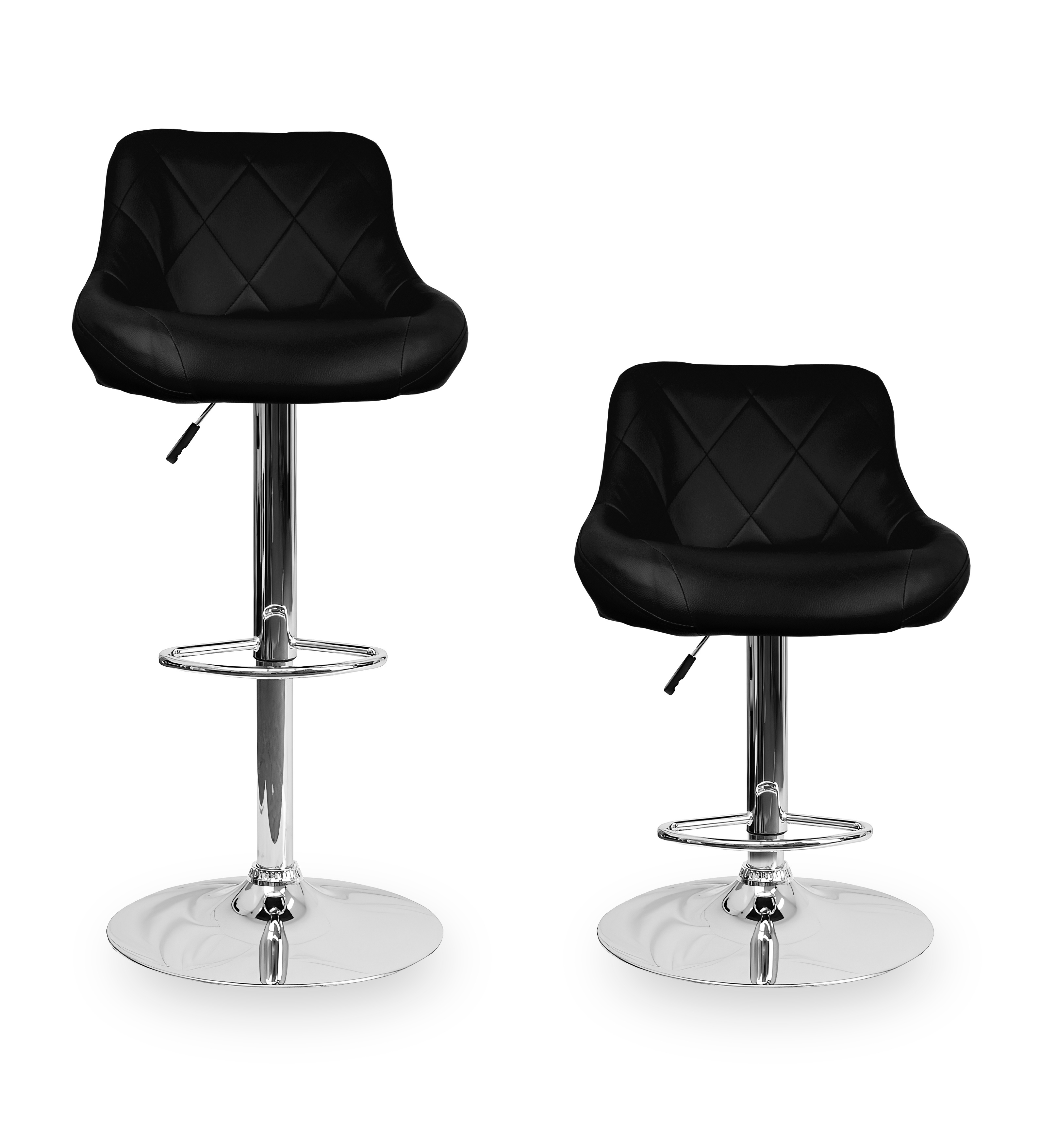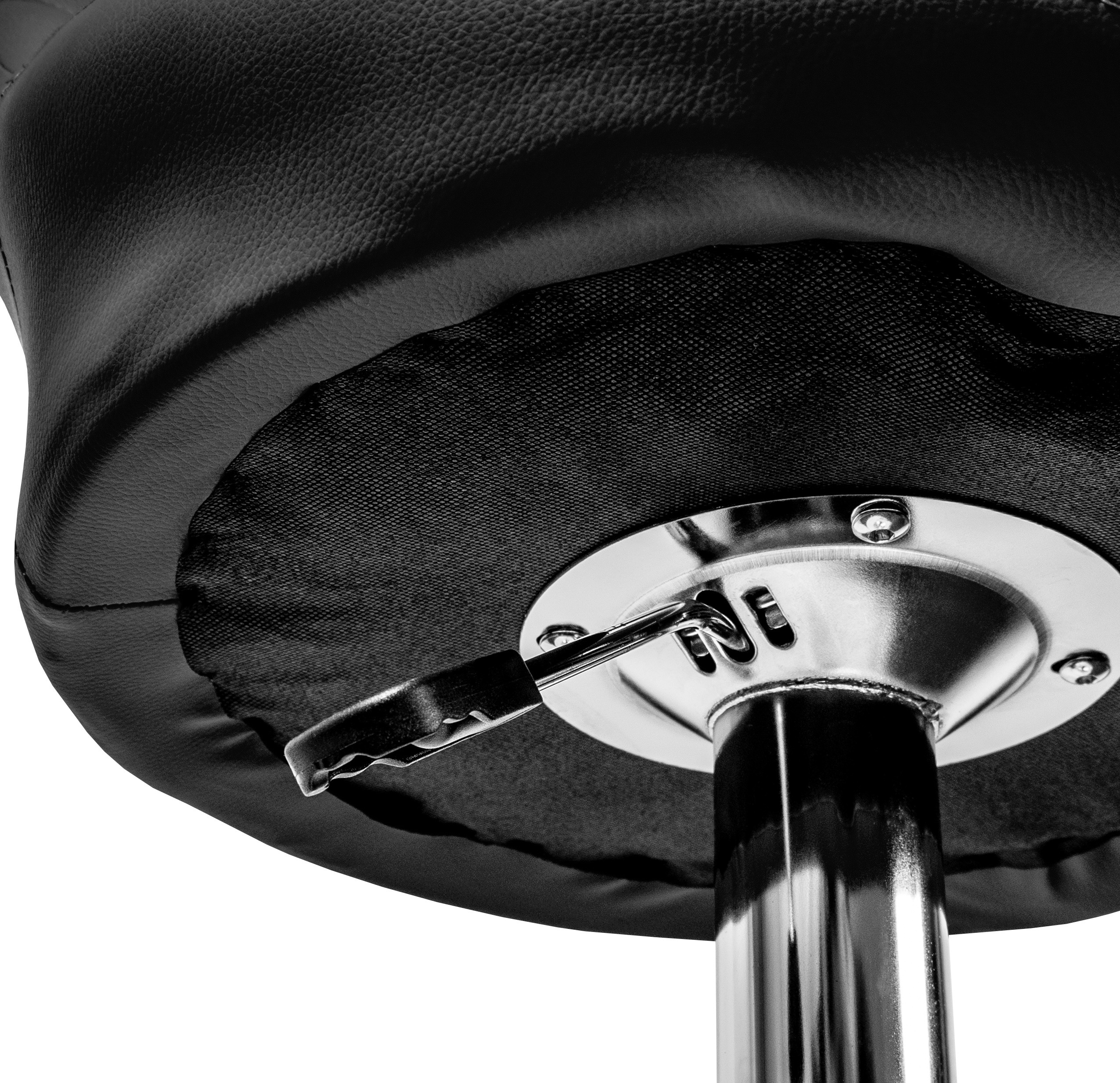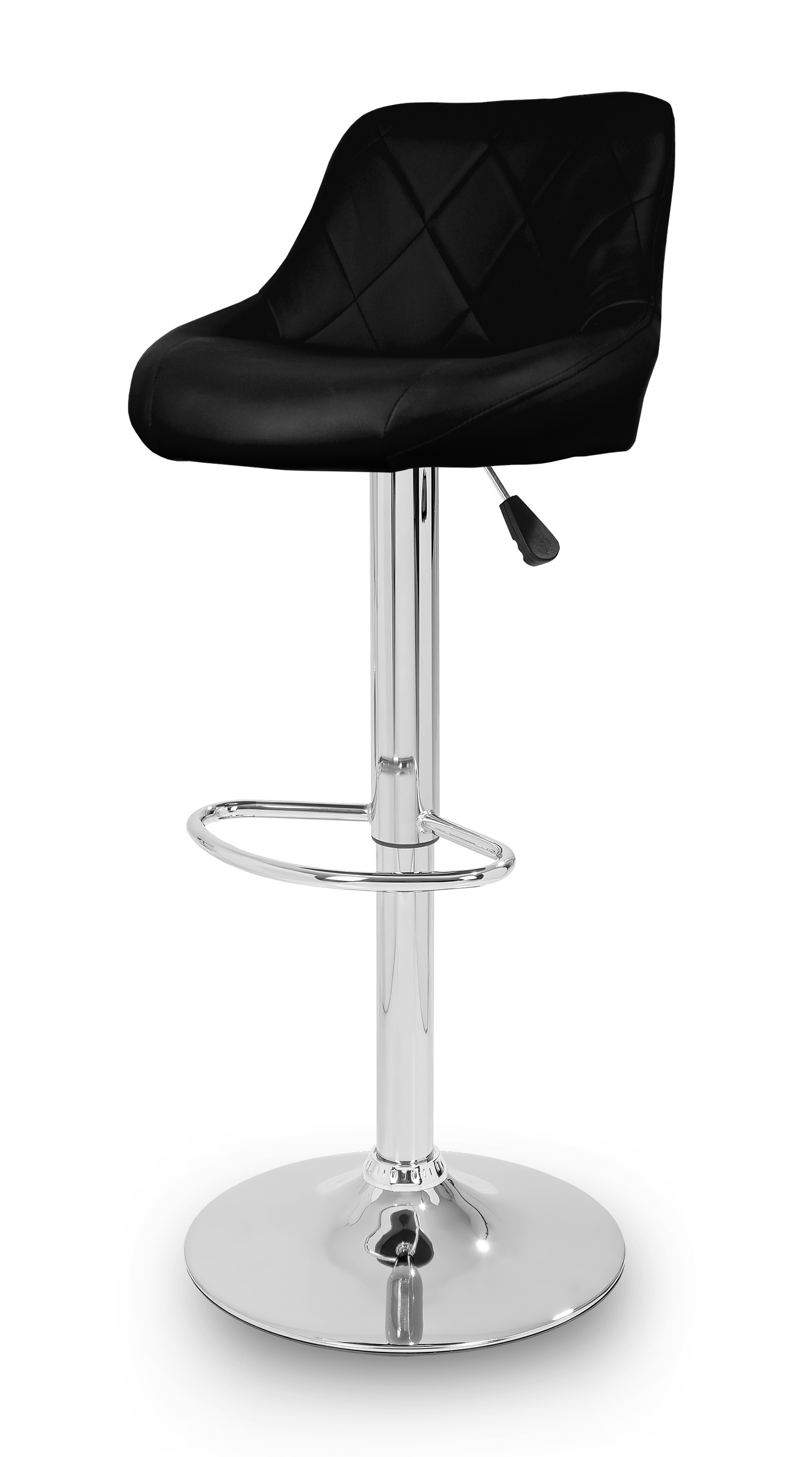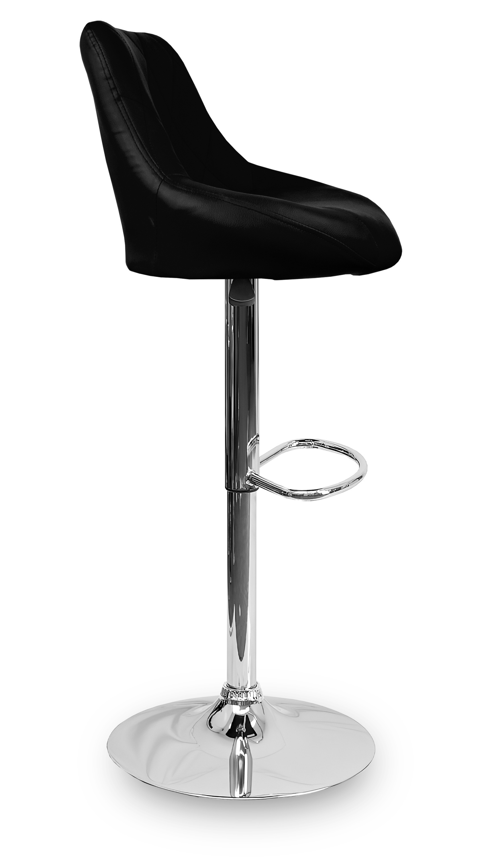 Židle má praktickou opěrku na nohy z pochromovaného kovu. Kruhová podnož a centrální noha jsou z chromu v lesku.