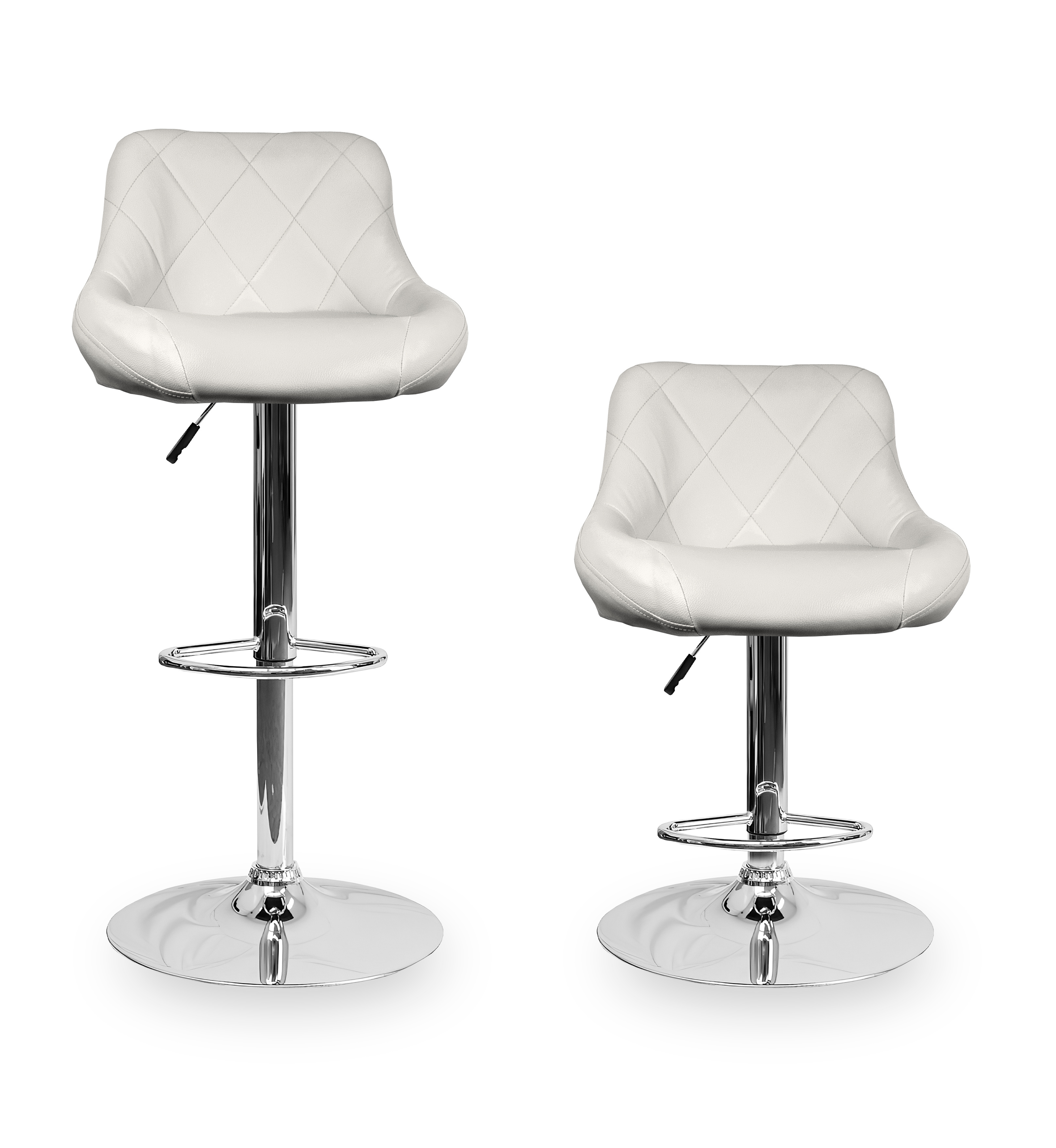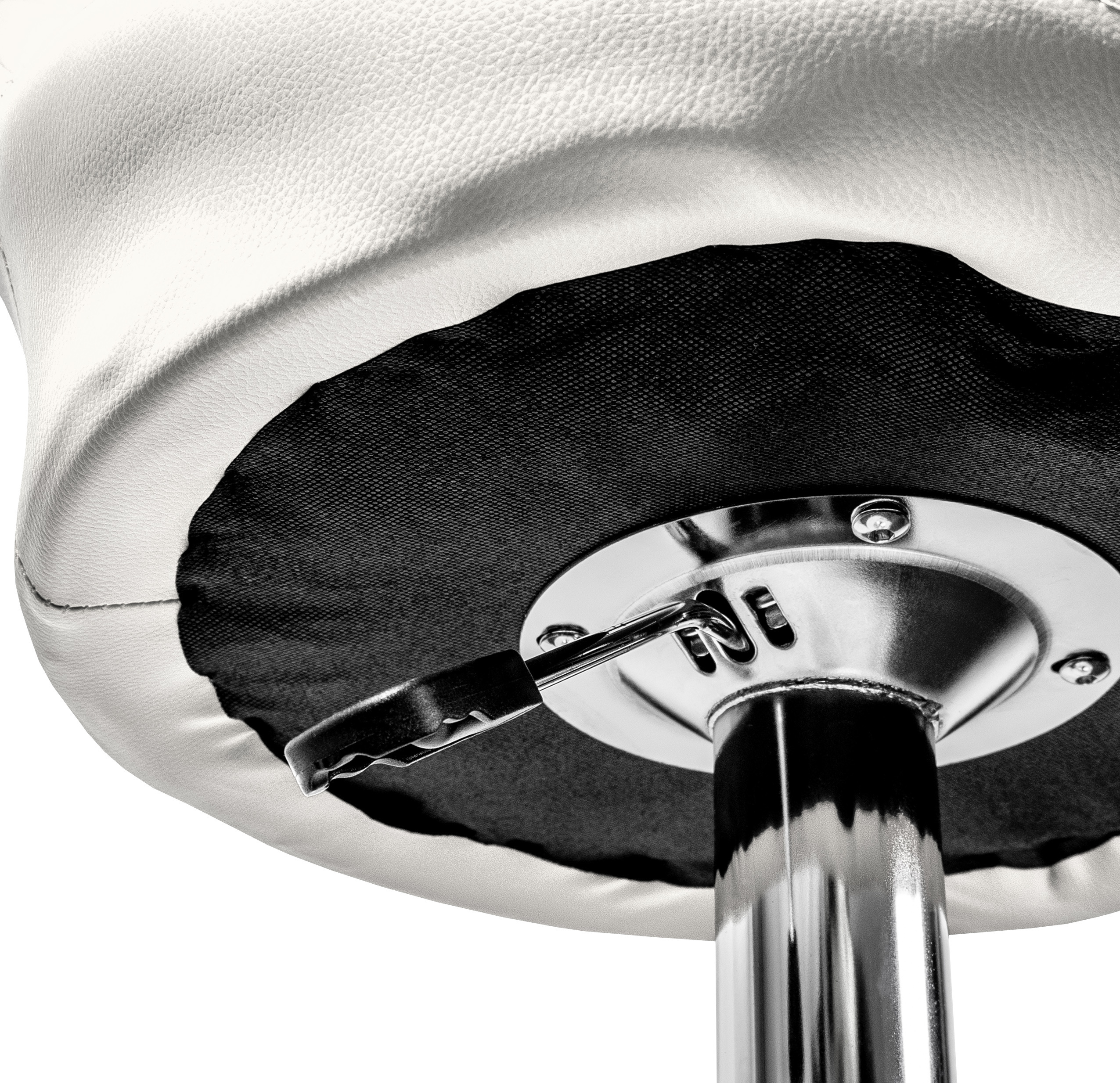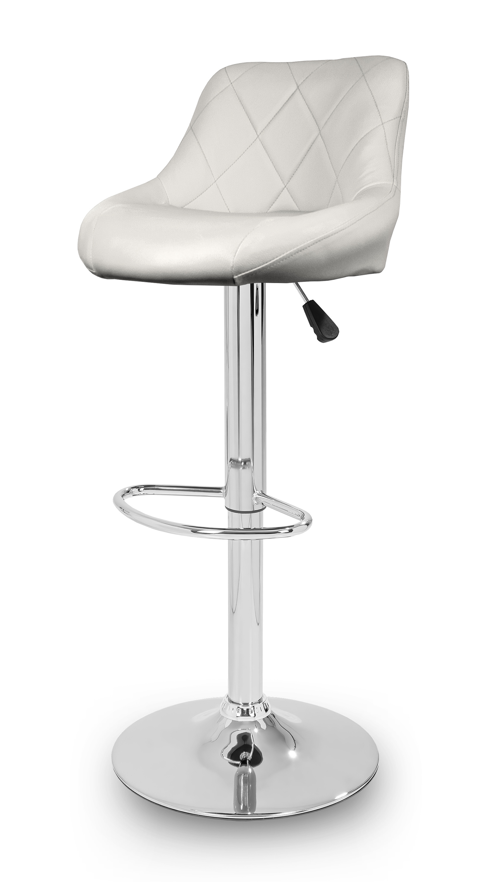 Židle má praktickou opěrku na nohy z pochromovaného kovu. Kruhová podnož a centrální noha jsou z chromu v lesku.