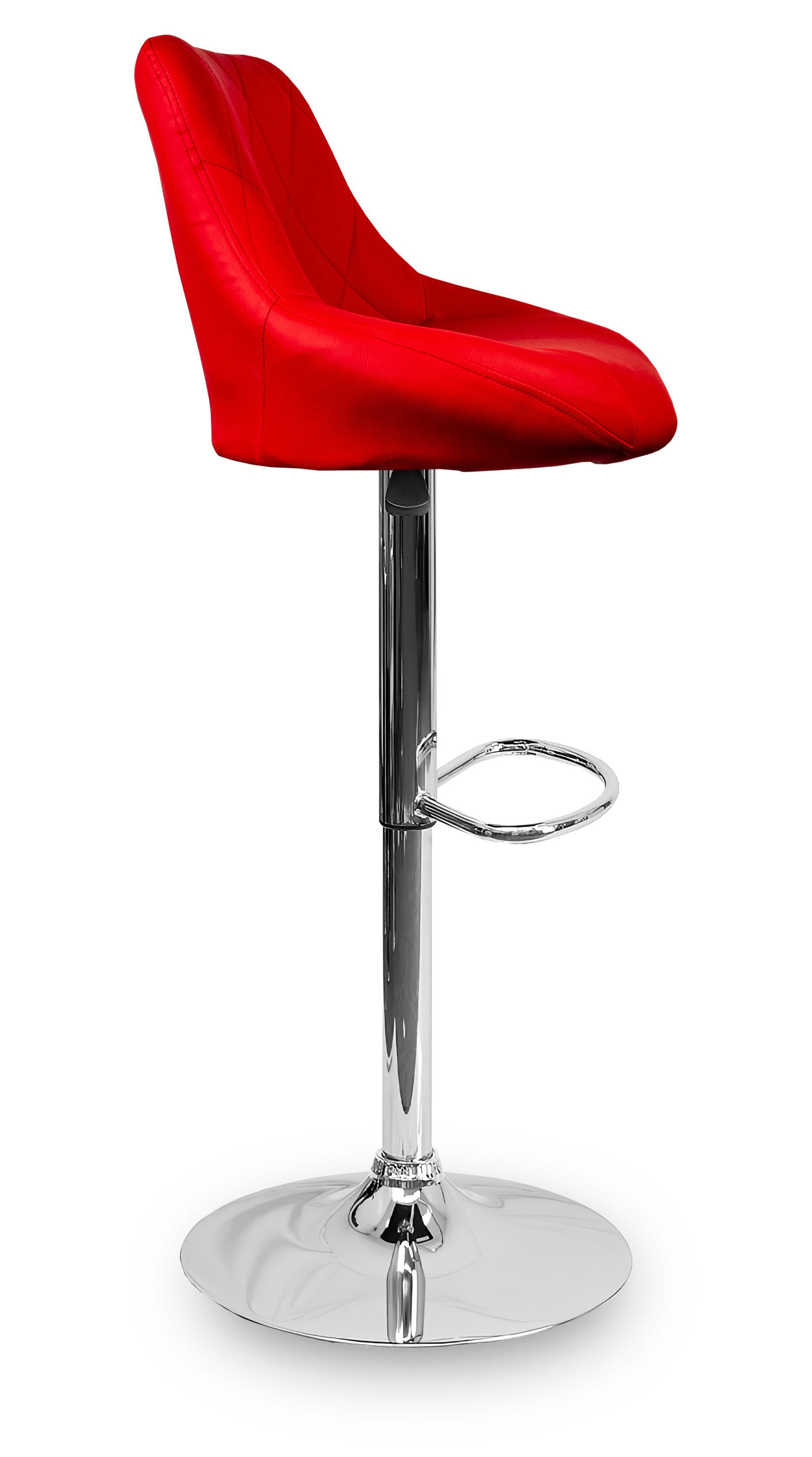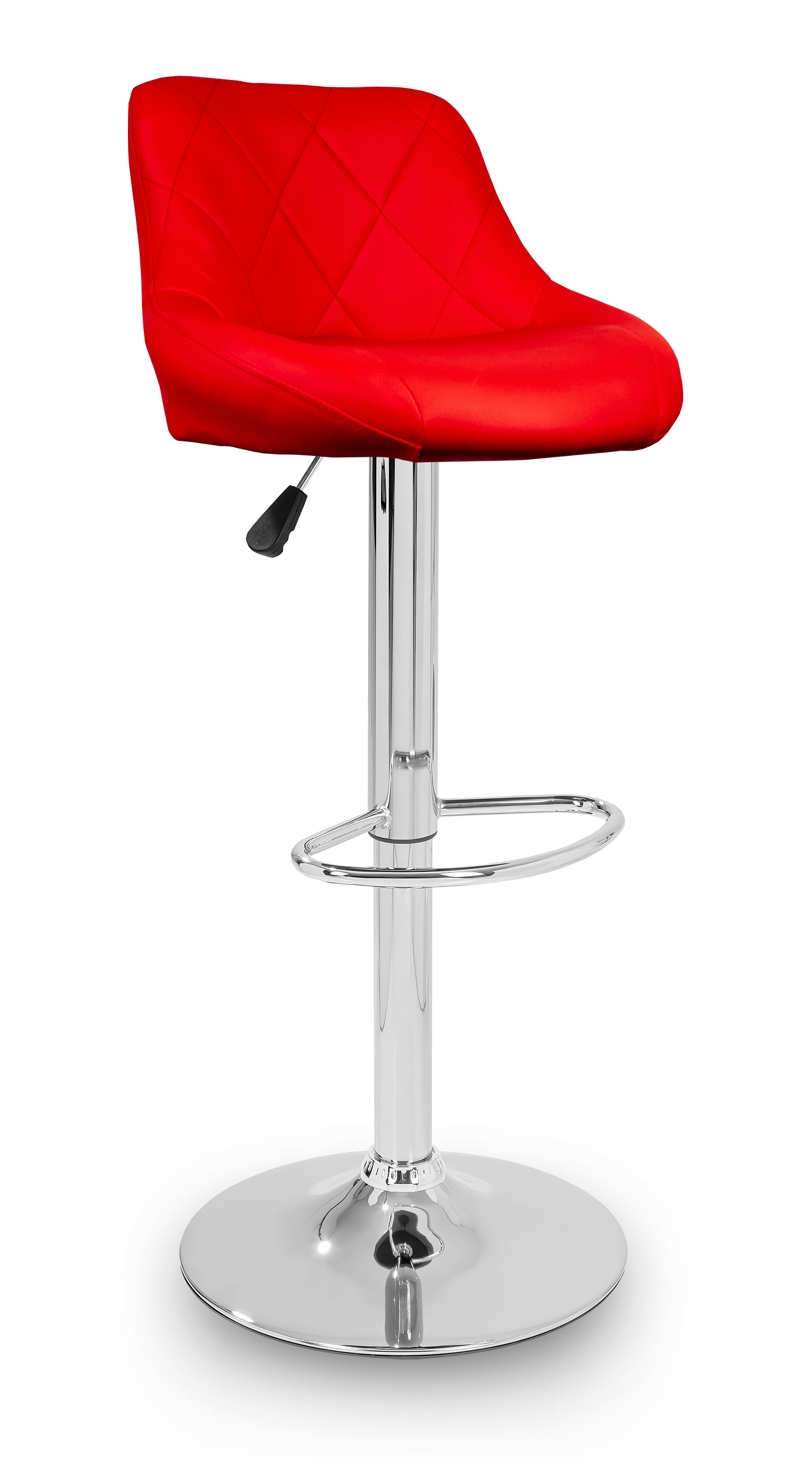 Židle má praktickou opěrku na nohy z pochromovaného kovu. Kruhová podnož a centrální noha jsou z chromu v lesku.