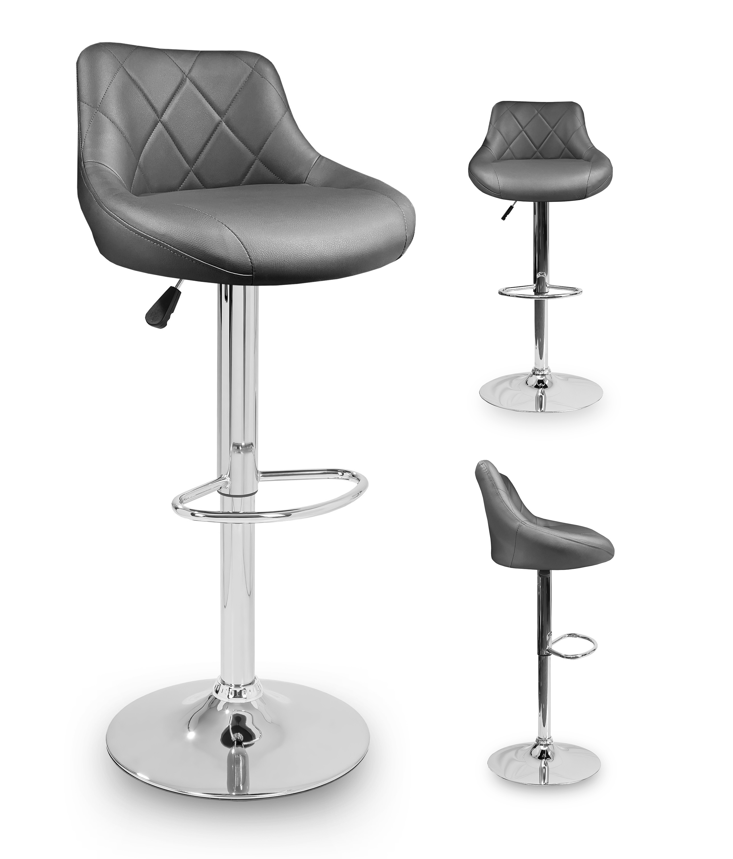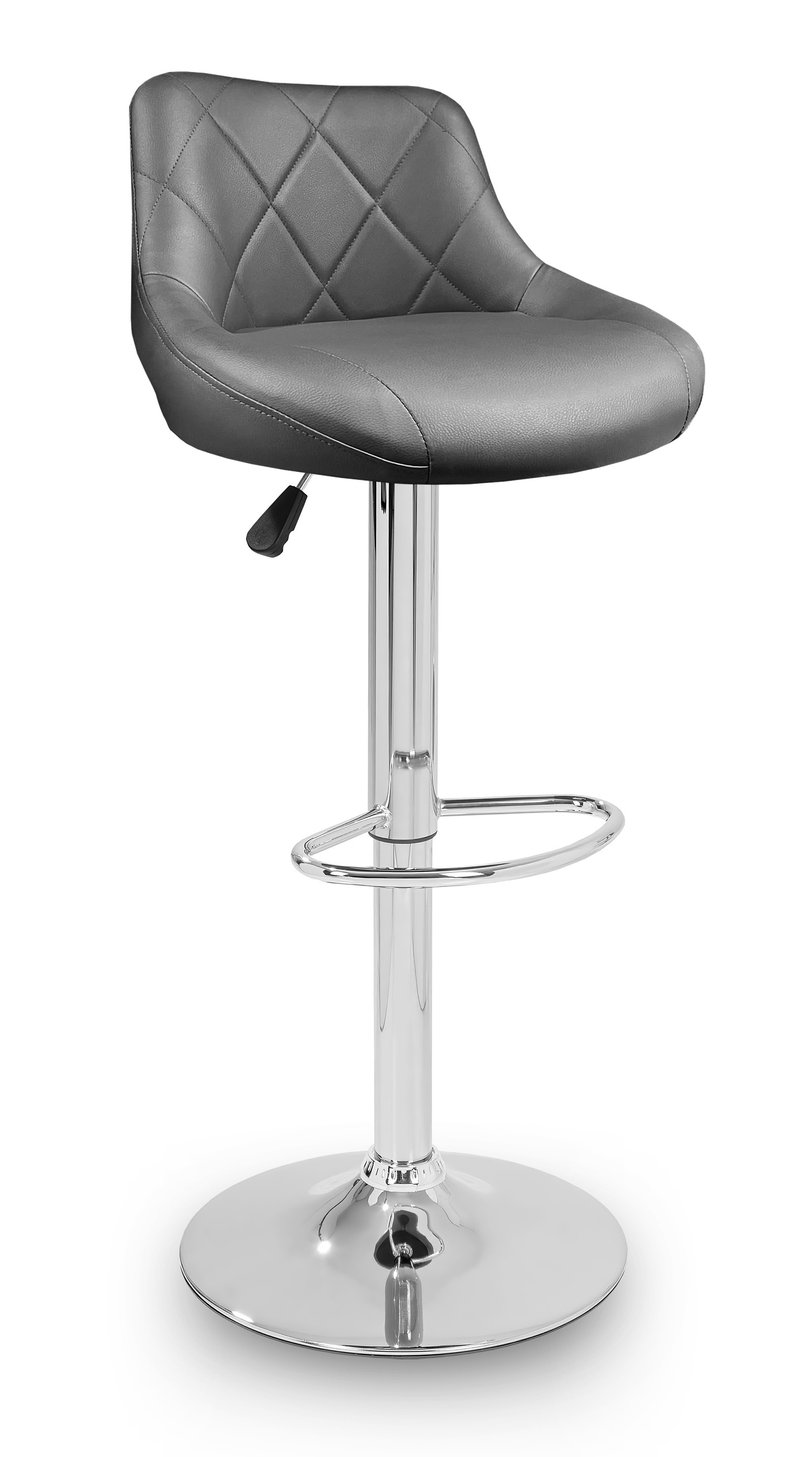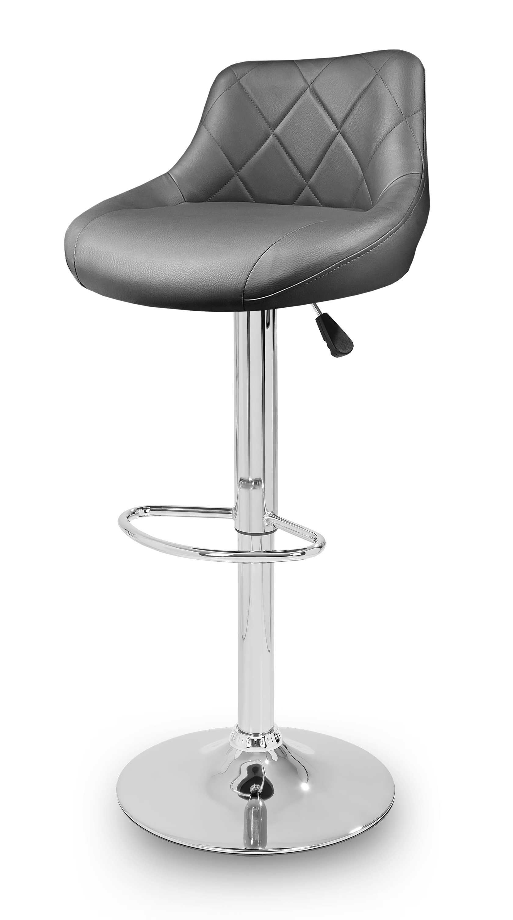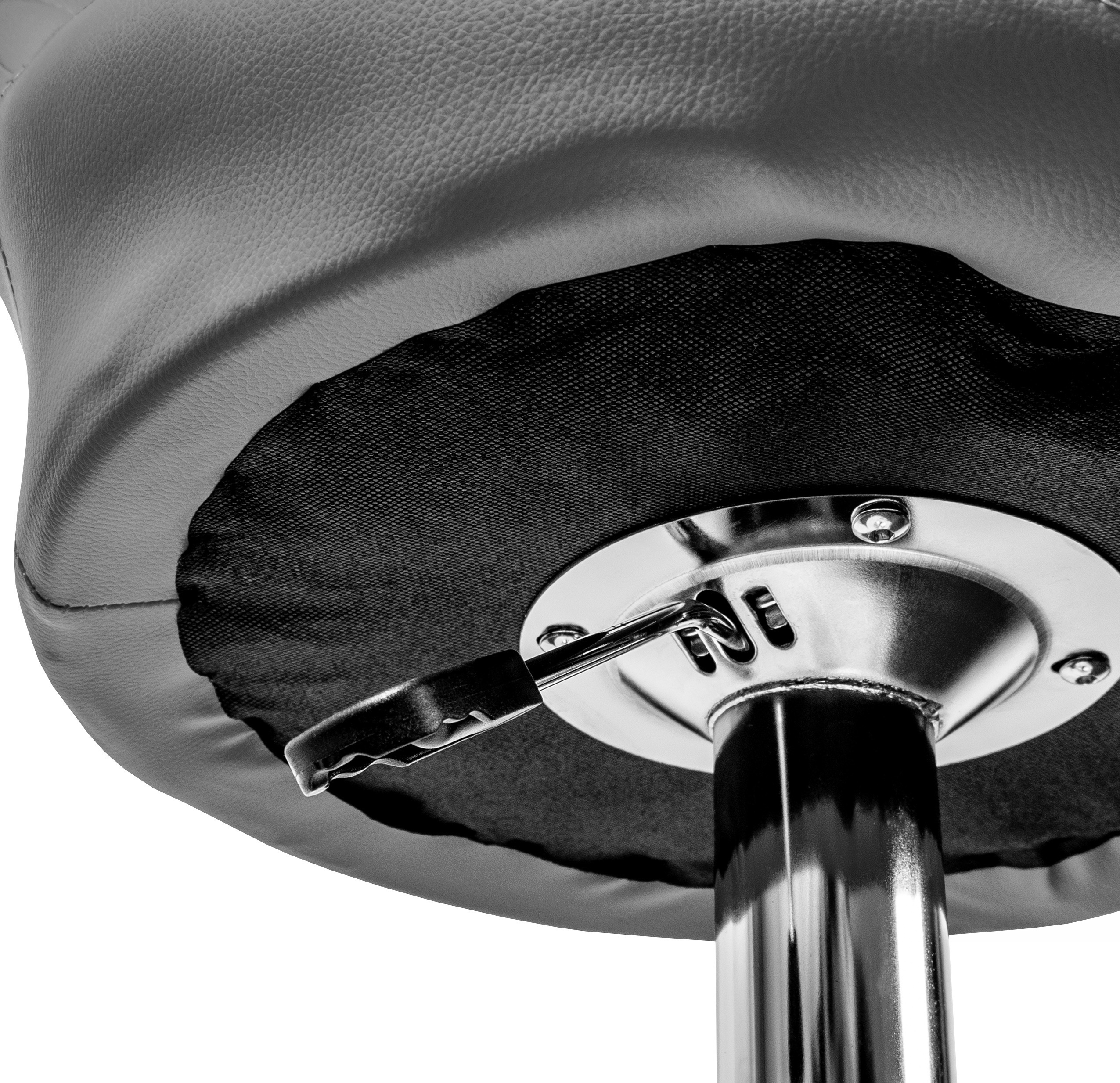 Židle má praktickou opěrku na nohy z pochromovaného kovu. Kruhová podnož a centrální noha jsou z chromu v lesku.