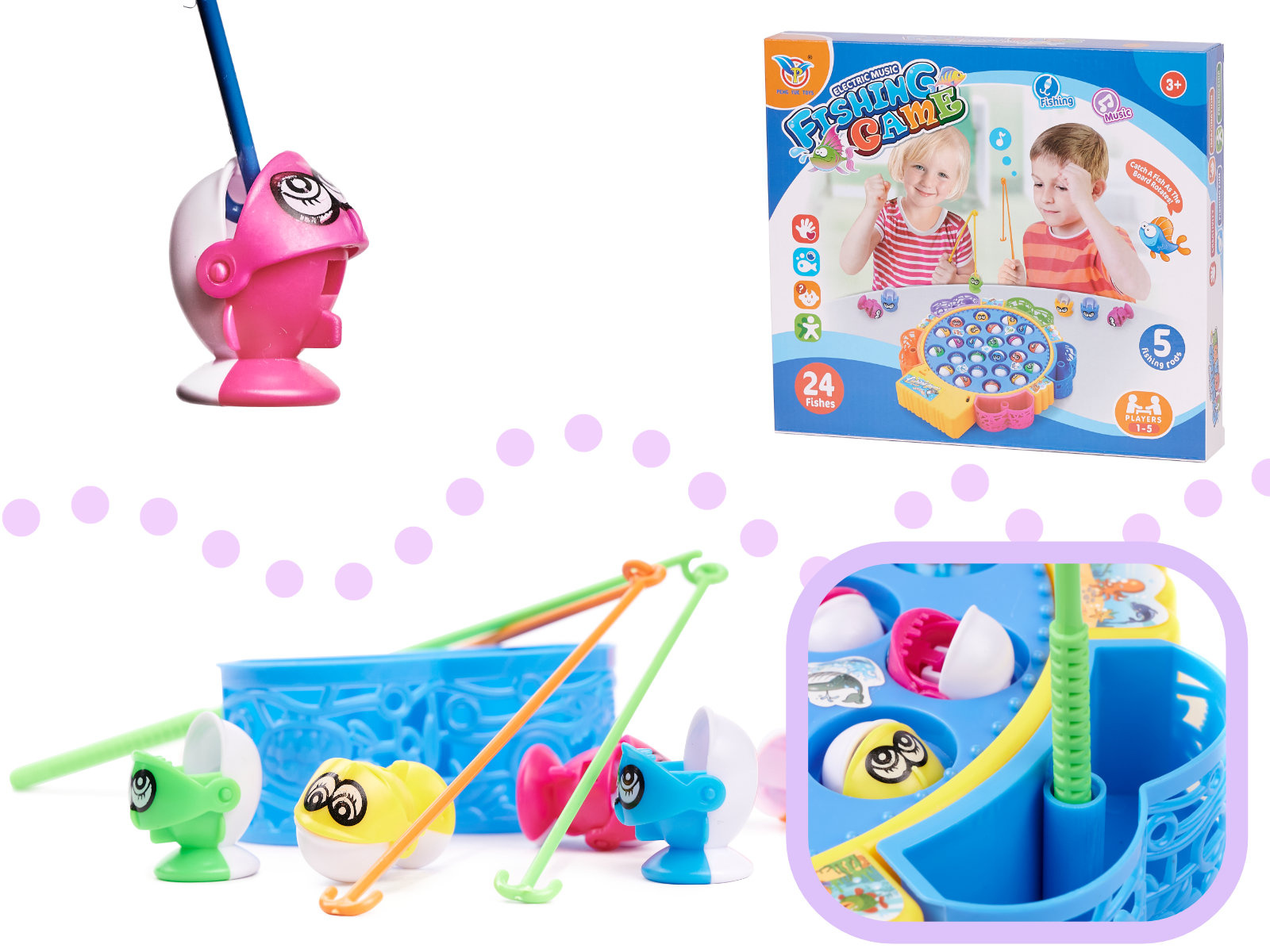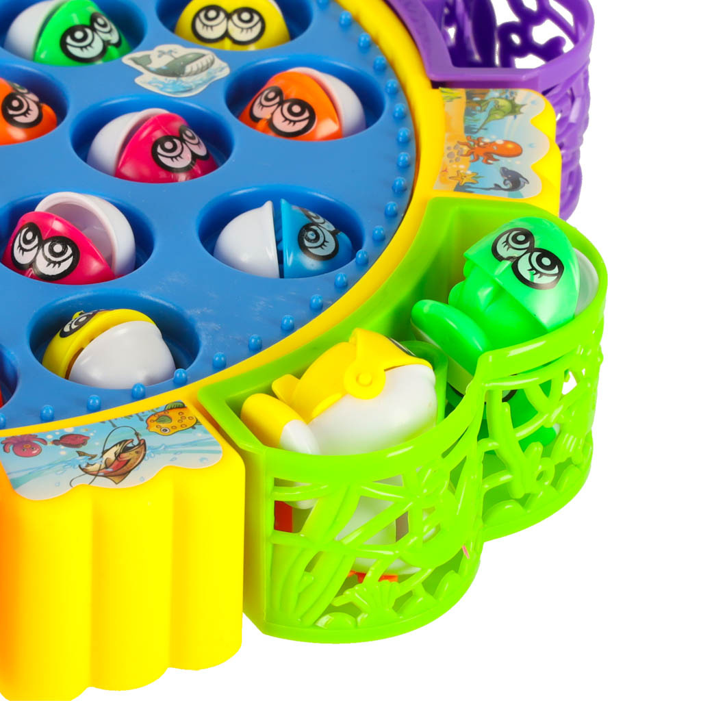 - Vítězem se stává ten, kdo uloví co nejvíce ryb na rybářský prut, který se vznáší - točí se po celé plošině.