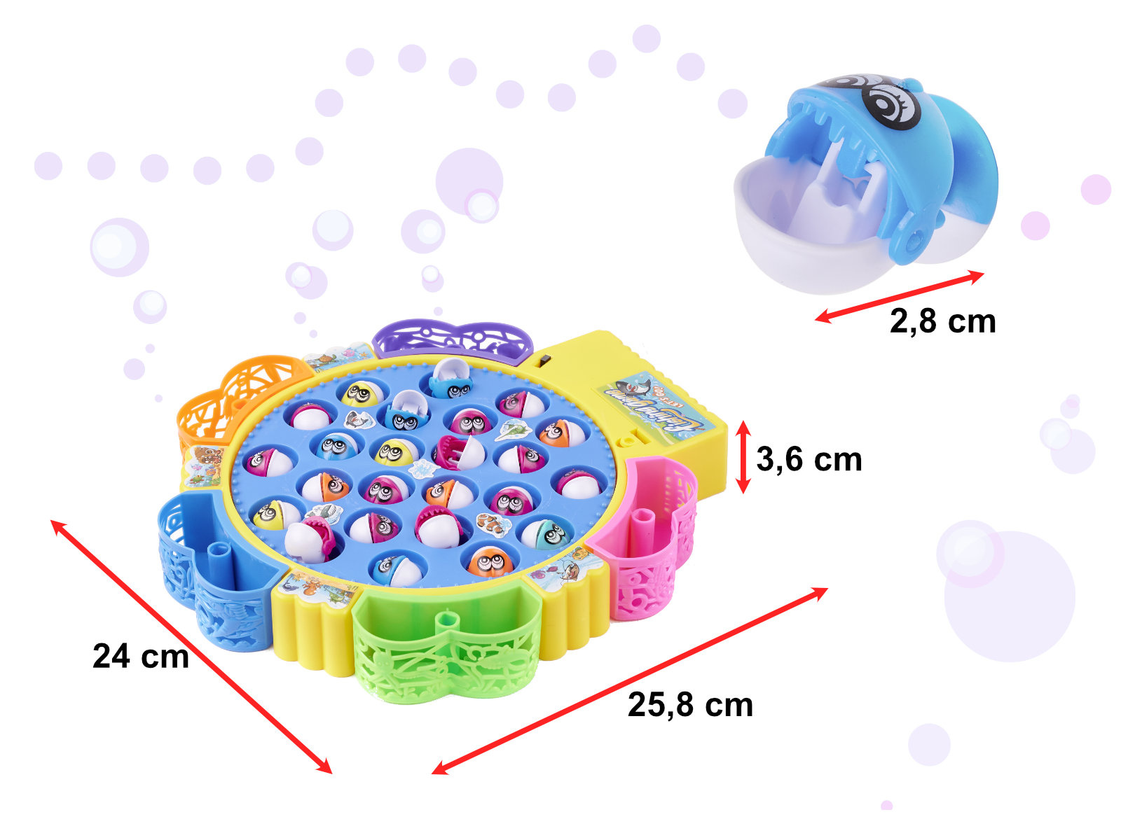 - Barevné nádoby na ulovené ryby jsou vyjímatelné.