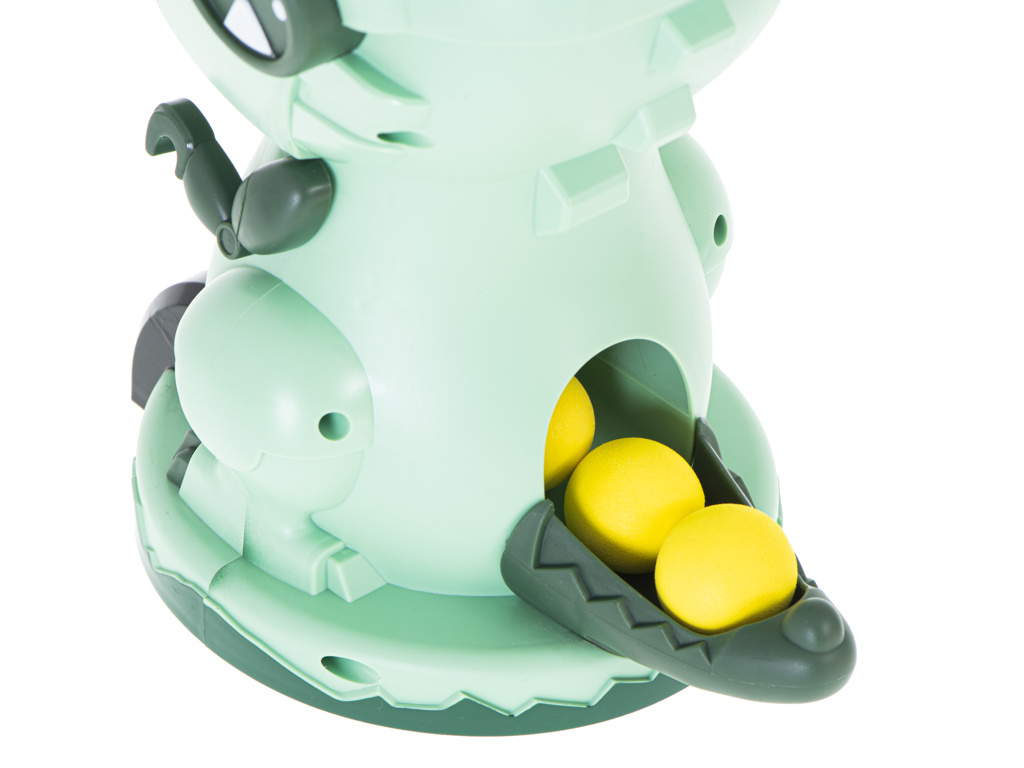 LED indikátor umístěný pod dinosaurem počítá body za každý zásah do tlamy příšery!