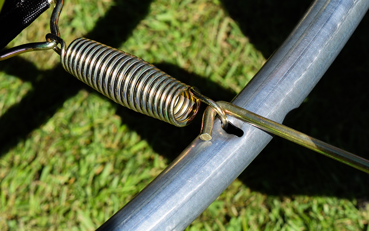 Maximální možnou bezpečnost trampolíny pak zajištuje polstrovaný obvodový pás (kryt pružin), který překrývá pružiny po celém obvodu trampolíny.