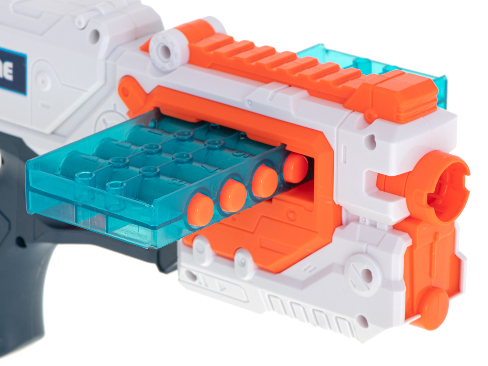 Zářivé barvy připomínají zbraně z oblíbených počítačových her, a proto je hračka atraktivní pro děti všech věkových kategorií.