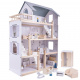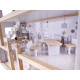 Mezi mnoha různými místnostmi se nachází koupelna, pracovna, obývací pokoj, jídelna s kuchyňským koutem a ložnice! Každá z nich je plně vybavená a připravená přivítat novou rodinu panenek!