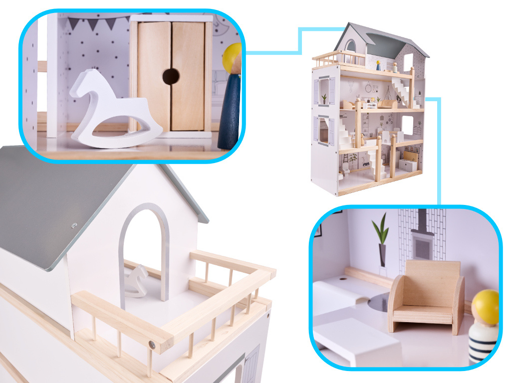 Nechte své dítě, aby se stalo hlavou domu. Dřevěný domeček pro panenky byl vyroben s mimořádnou péčí a důrazem na detail, takže upoutá pozornost nejen vašeho děťátka, ale i vás a vašich návštěv!