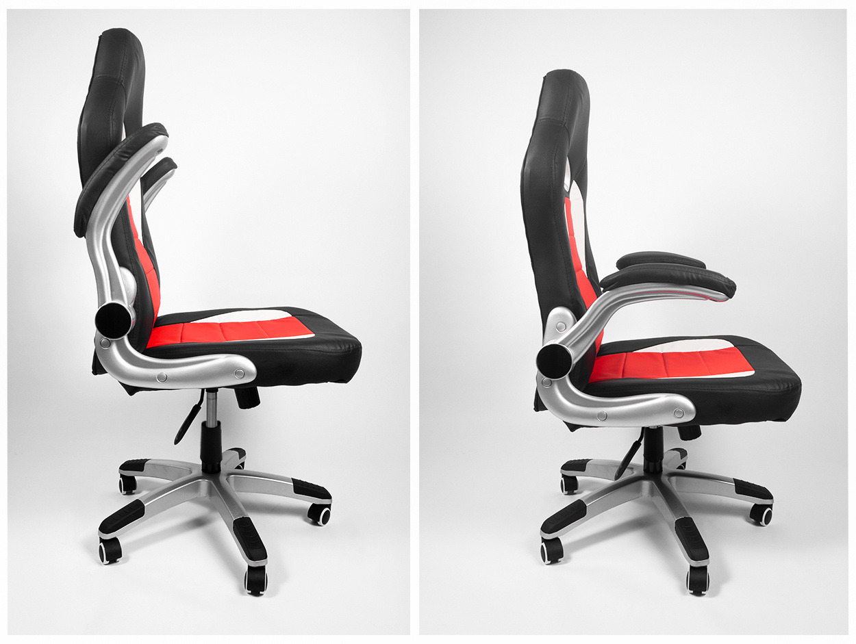 O vaše pohodlí se postará odolný potah z eko kůže v atraktivních barvách, zvýšený opěrák zad, ergonomicky tvarovaný sedák a vyklápěcí područky s měkčeným povrchem.