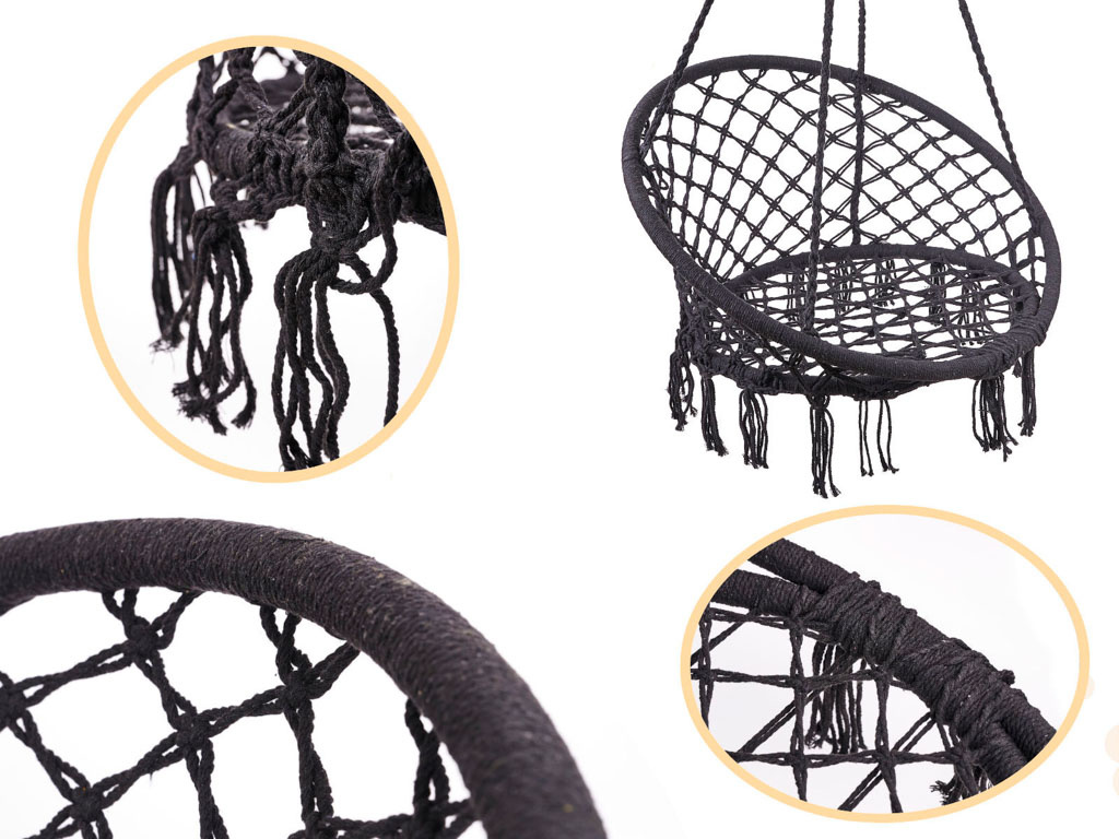 Fantastická houpačka s opěradlem čapího hnízda.Každému jistě zpříjemní relaxaci doma nebo venku. Vyrobeno z robustního lana, které zaručuje bezpečnost. Maximální hmotnost: 150 kg. šířka s opěradlem: 80 cm Délka lana: 108 cm Barva:černáCelý popis