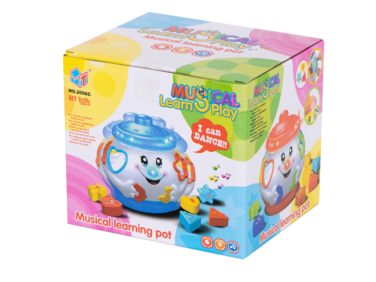 - Sada navíc obsahuje 6 kostek různých tvarů, které musí dítě vložit do příslušných otvorů.