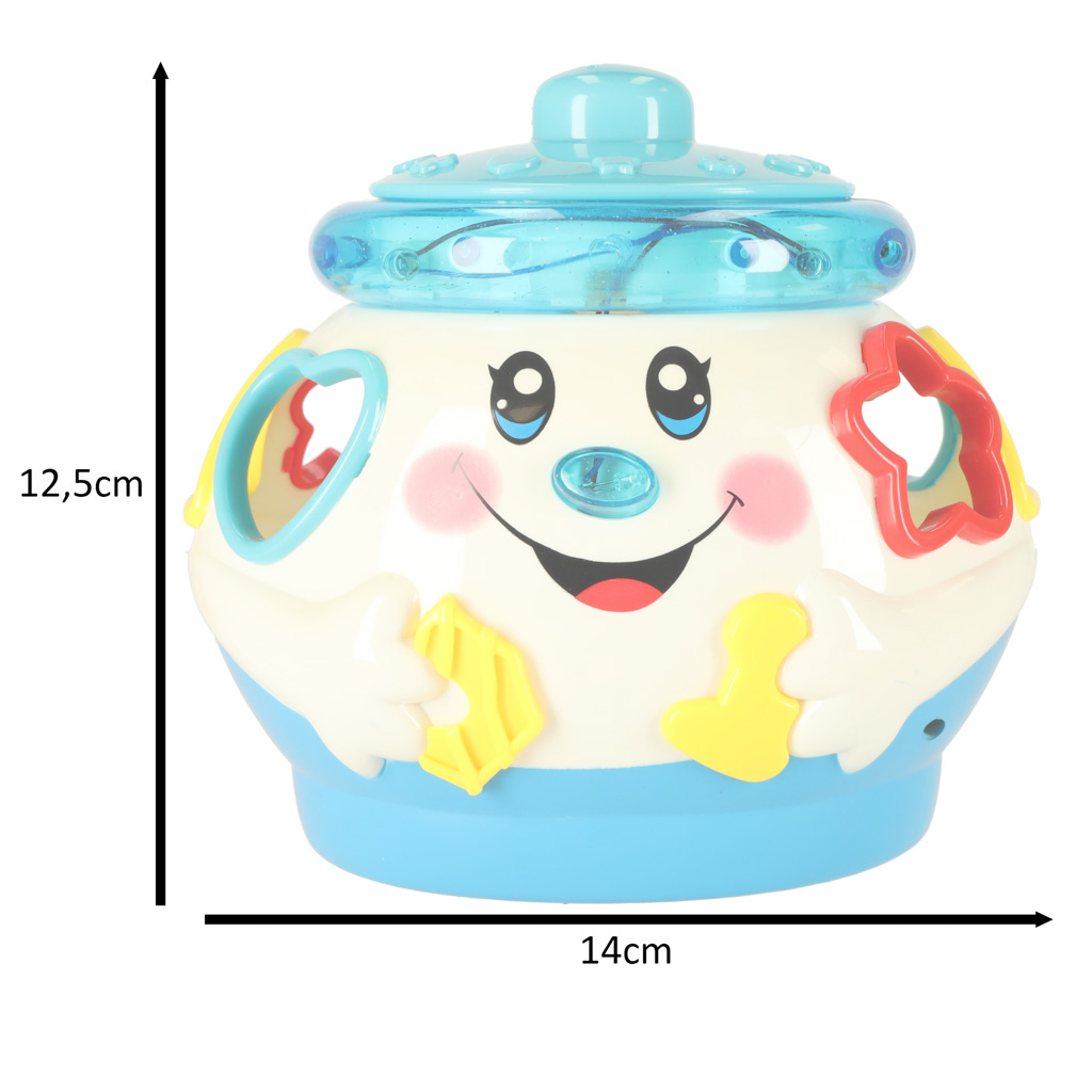 Kouzelný hrnec na hraní. Po zapnutí hrnec hraje melodie a jezdí po místnosti.