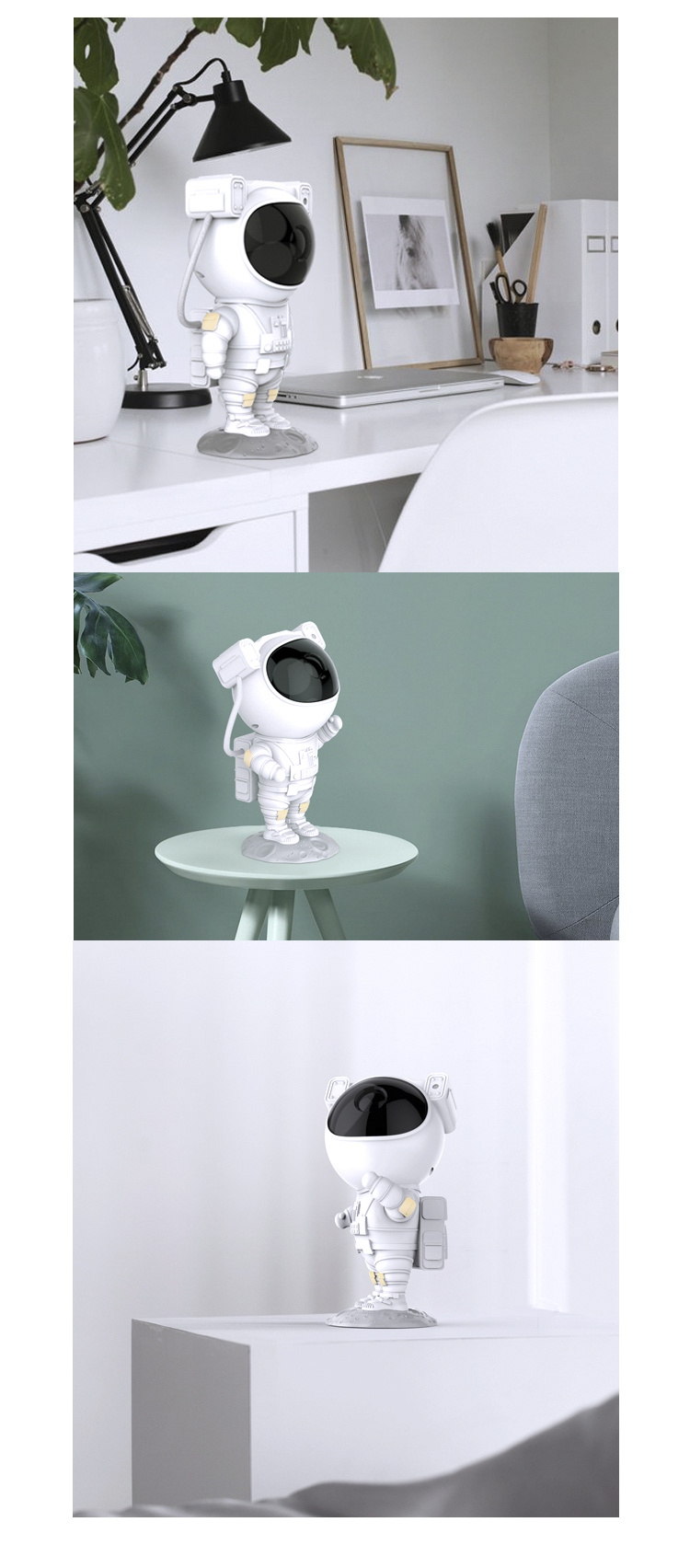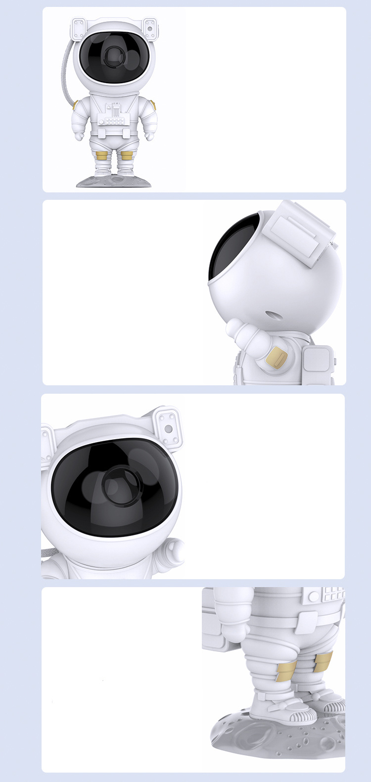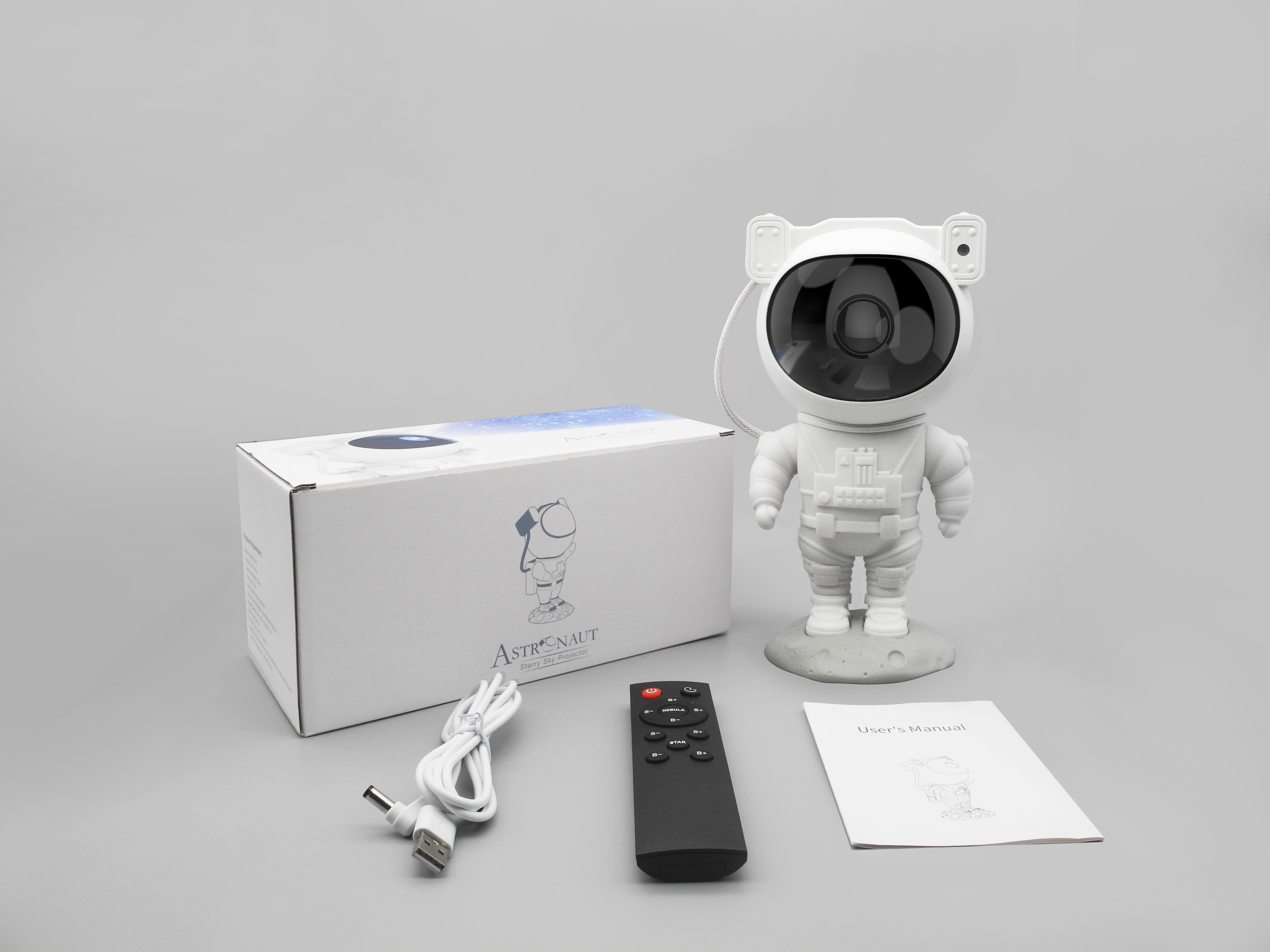 Hlavu astronauta lze otáčet o 360°. Světelný projektor je možné ovládat pomocí dálkového ovládání. Jistě oceníte možnost časovače, který projekci po dané době vypne.