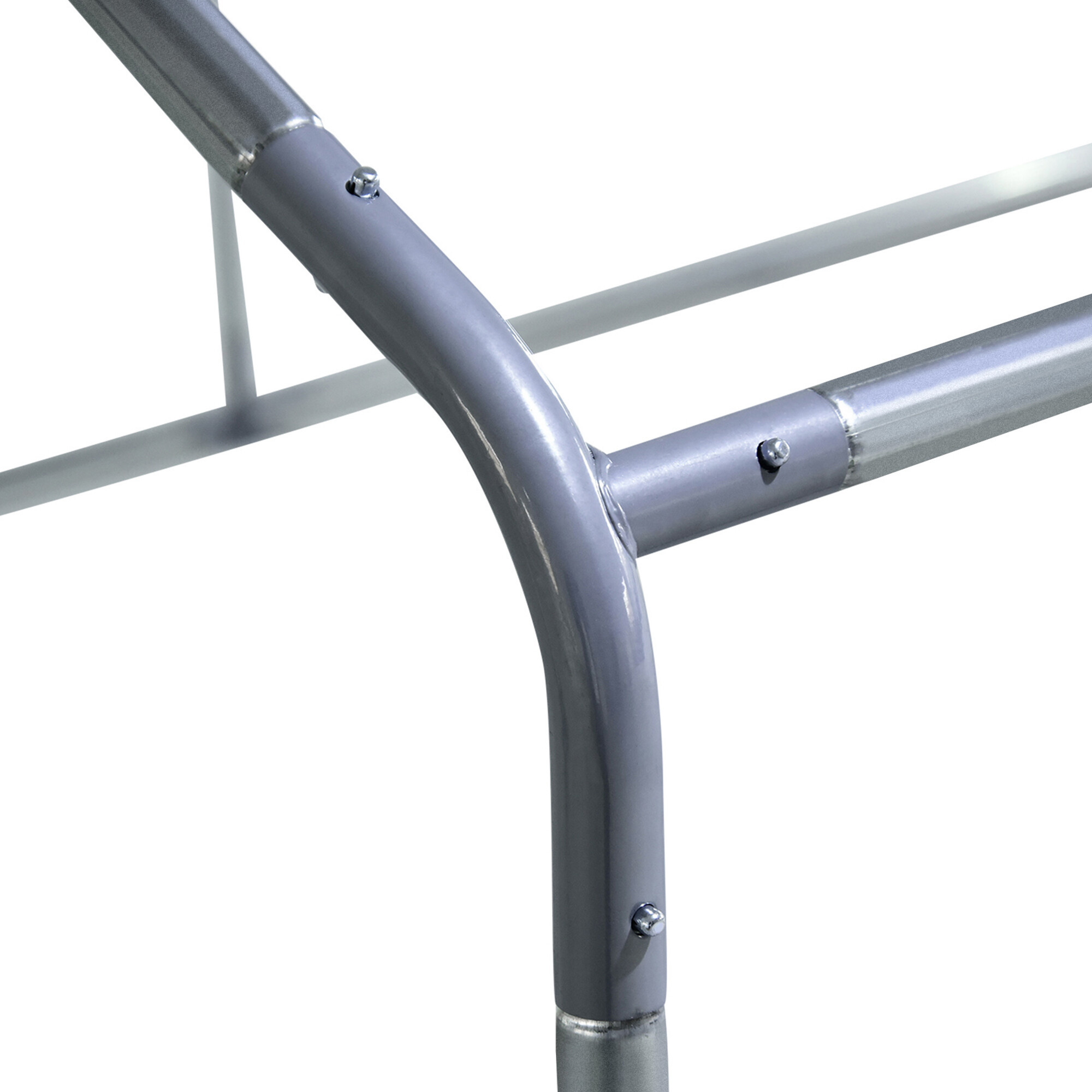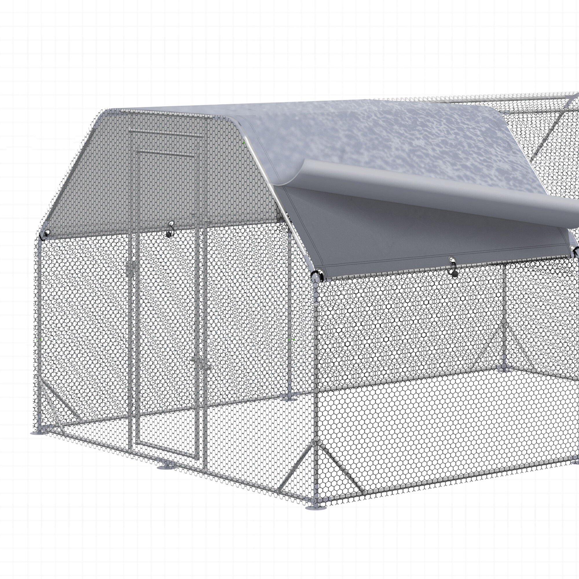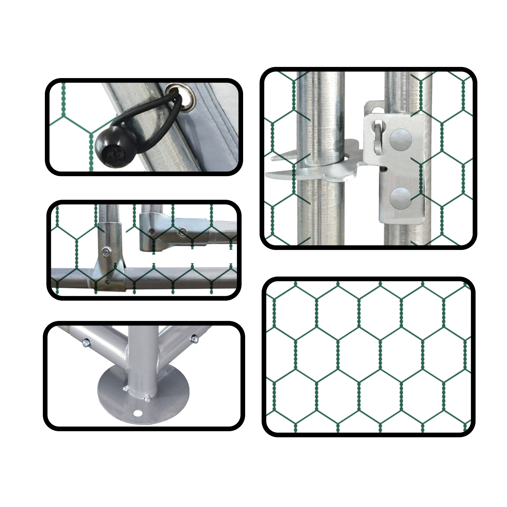 Klec vyrobena z pevné stříbrné pozinkované oceli, která dodá výběhu patřičnou stabilitu a zabrání nechtěným úrazům, v podobě útěků vaší drůbeže. Konstrukce je doplněna o pozinkované pletivo v zelené barvě a střechu, kterou tvoří šedá PVC plachta.