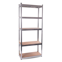 Na výšce cca 174 cm máte k dispozici 5 polic z mdf, které lze výškově vložit dle potřeby. Rám z galvanizované oceli ve stříbrné barvě zaručuje stabilitu a velkou nosnost cca 375 kg (na každou polici připadá cca 75 kg).