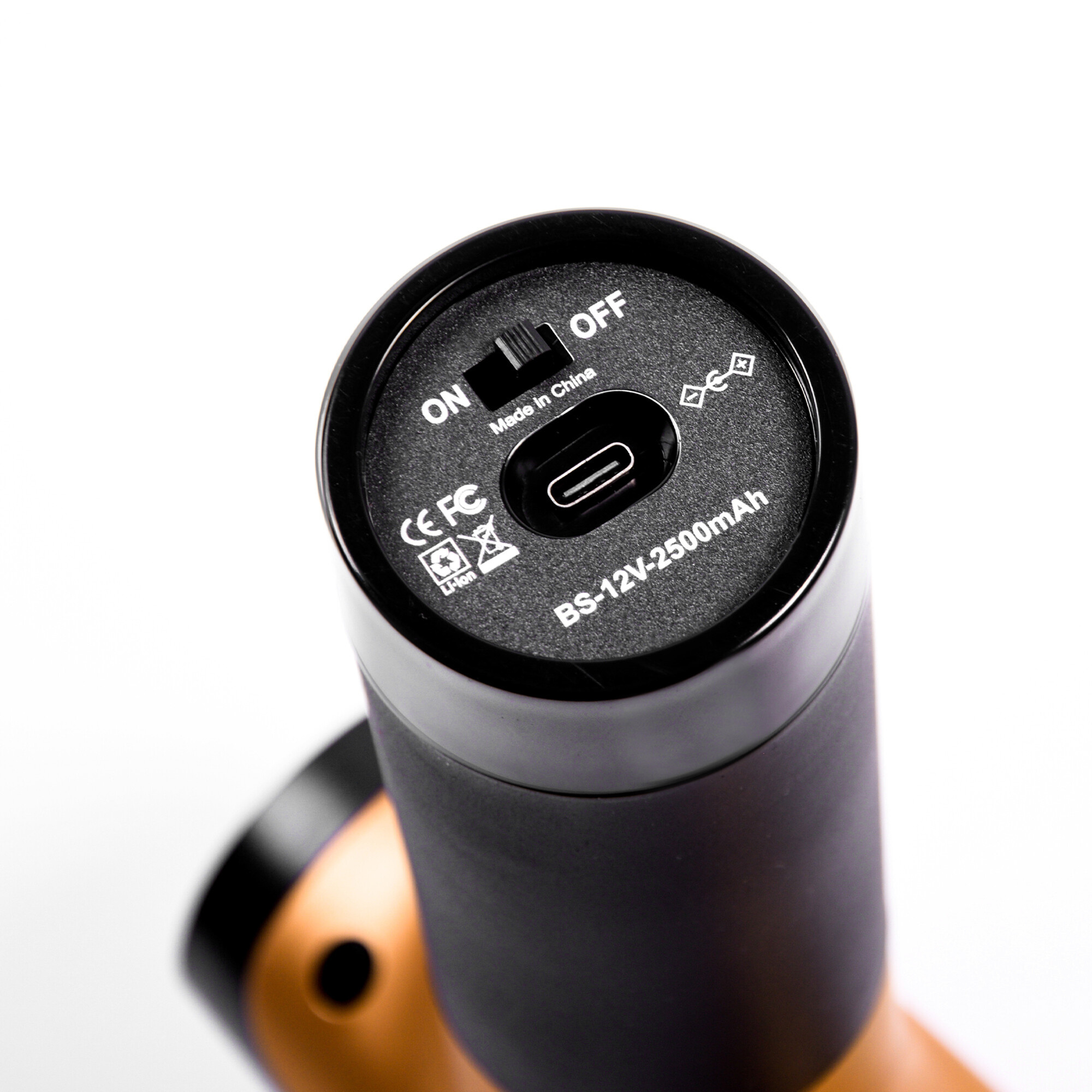 Masážní pistole má zabudovanou Lithium-iontovou baterii o kapacitě 2500mAh, která vydrží na jedno nabití až 3 hodin, podle používaného rychlostního stupně.