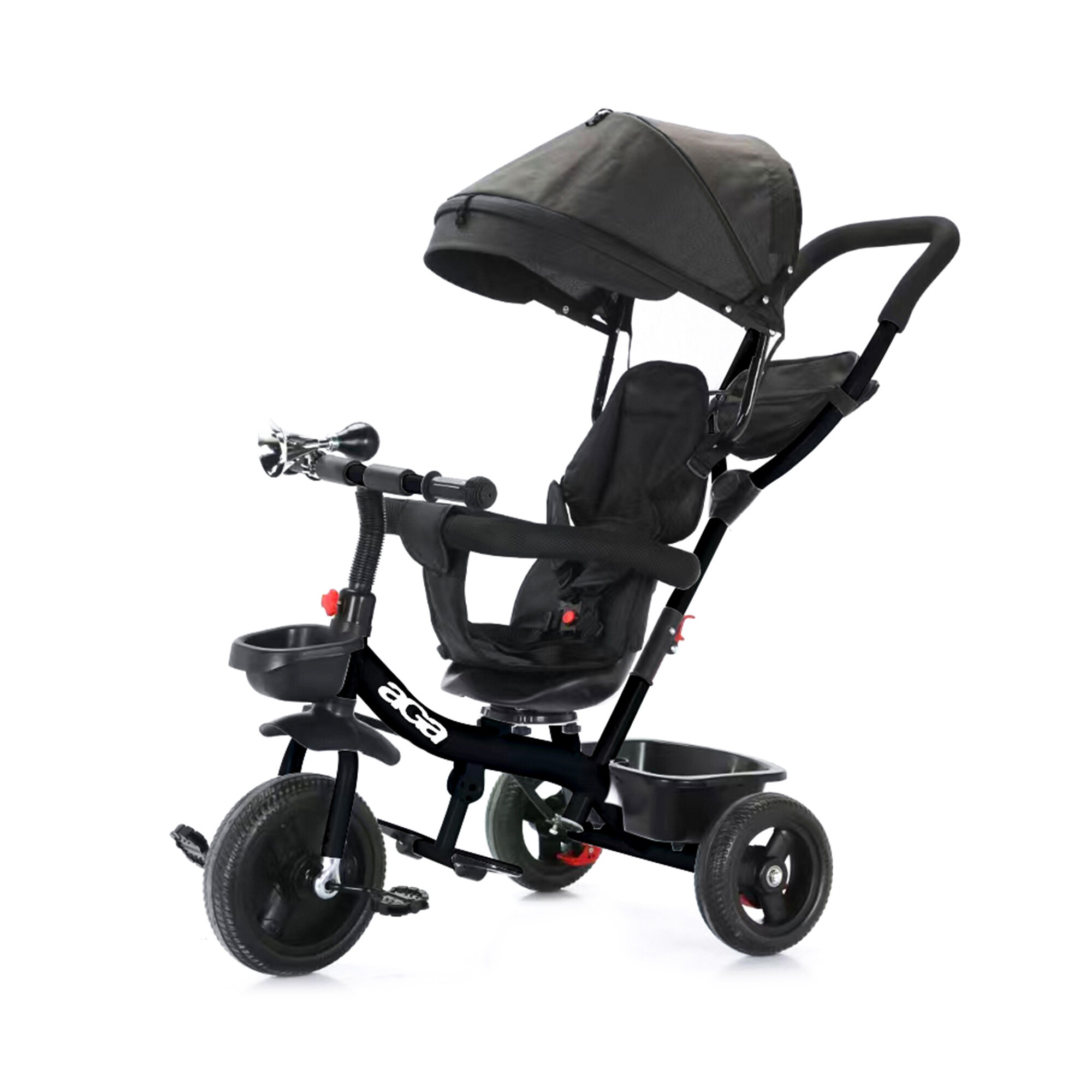 Sedadlo lze otočit o 360° a to ve směru jízdy nebo čelem k rodiči. V zadní a přední části tříkolky je umístěn odkládací košík.