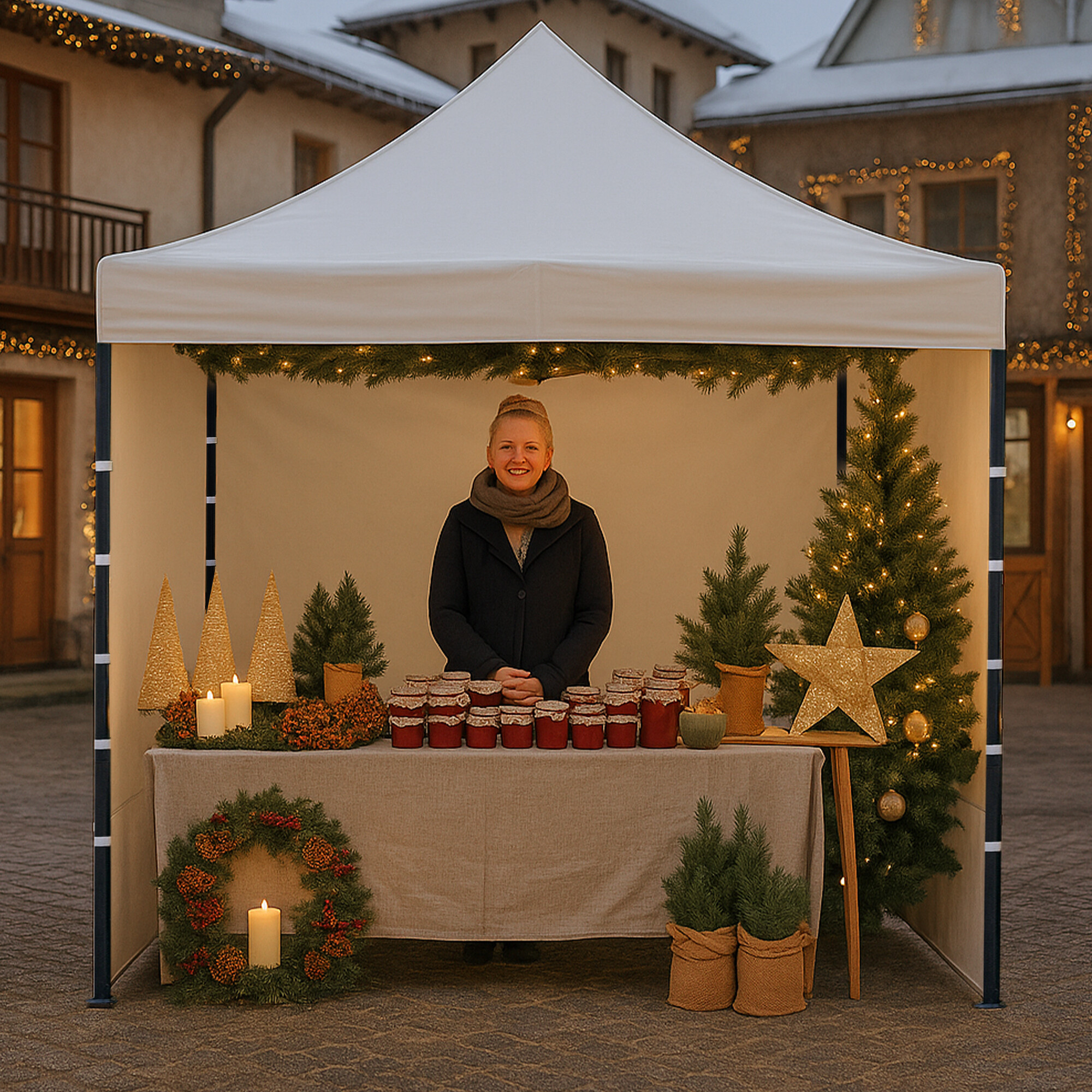 - Široké pole možností využití stánku (např. prodejní, party, výstavní, zahradní nebo reklamní)