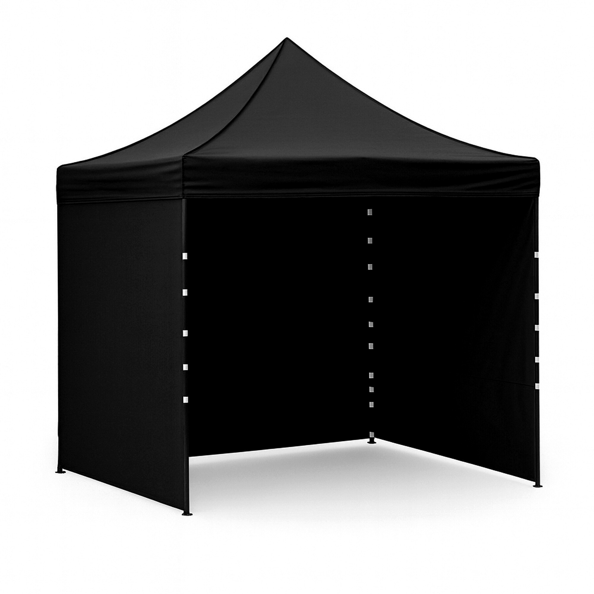 Střecha z 420D PU Oxfordu a bočnice z PVC Oxford 210D poskytují ochranu před větrem i deštěm a zároveň vytvářejí reprezentativní zázemí pro prodejce i zákazníky. Díky praktickému suchému zipu lze bočnice rychle sejmout nebo znovu upevnit.