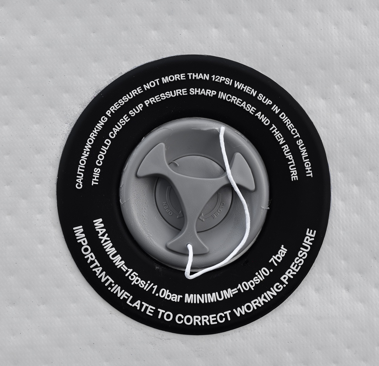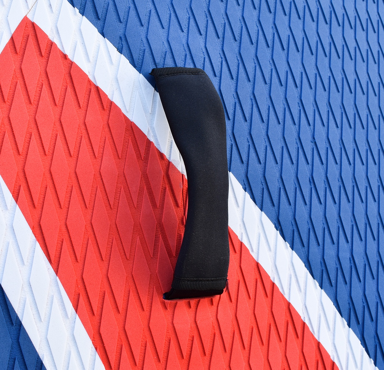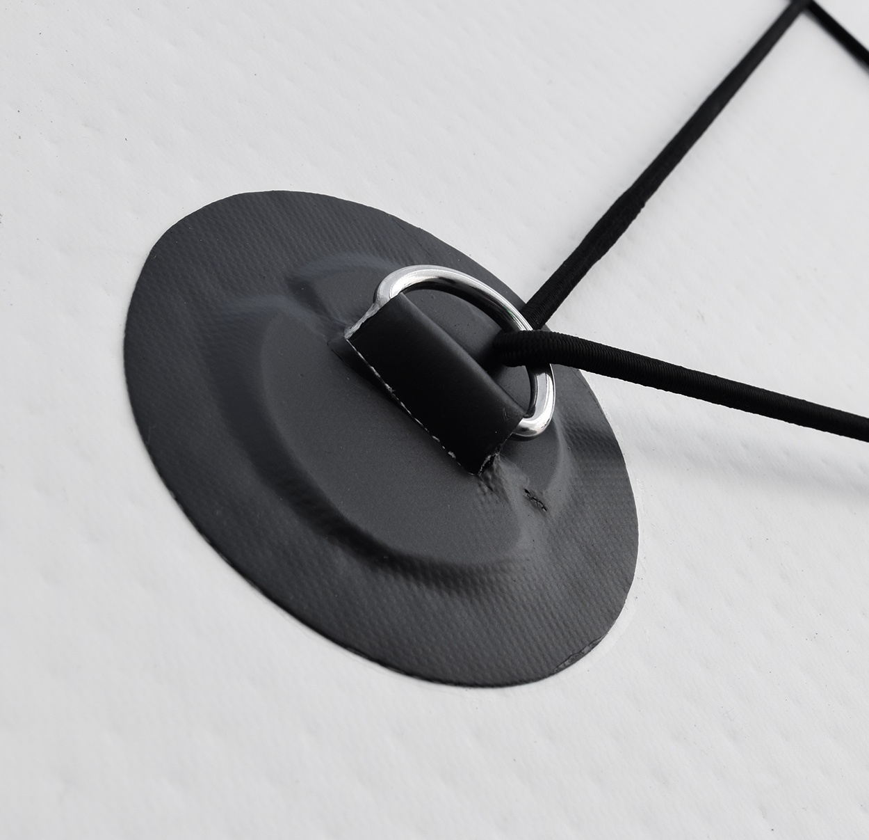 Prkno je vybaveno D-kroužkovými úchyty na přídi a zádi pro připevnění bezpečnostní šňůry.