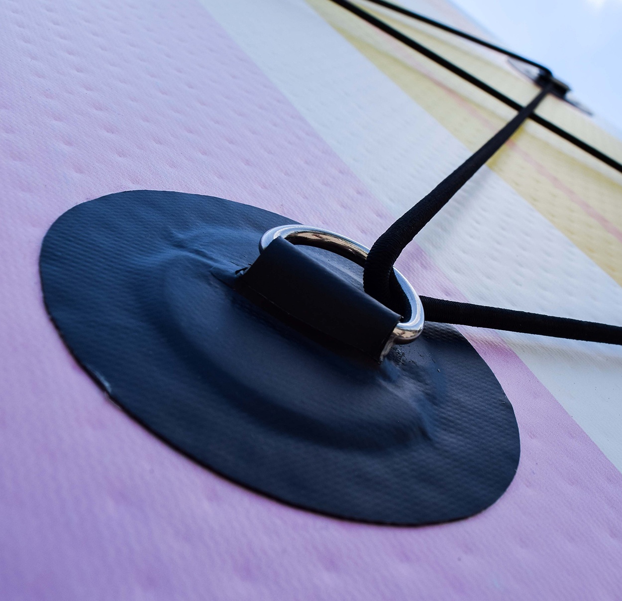 Prkno je vybaveno D-kroužkovými úchyty na přídi a zádi pro připevnění bezpečnostní šňůry.