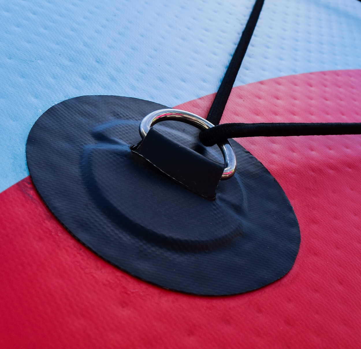 Prkno je vybaveno D-kroužkovými úchyty na přídi a zádi pro připevnění bezpečnostní šňůry.