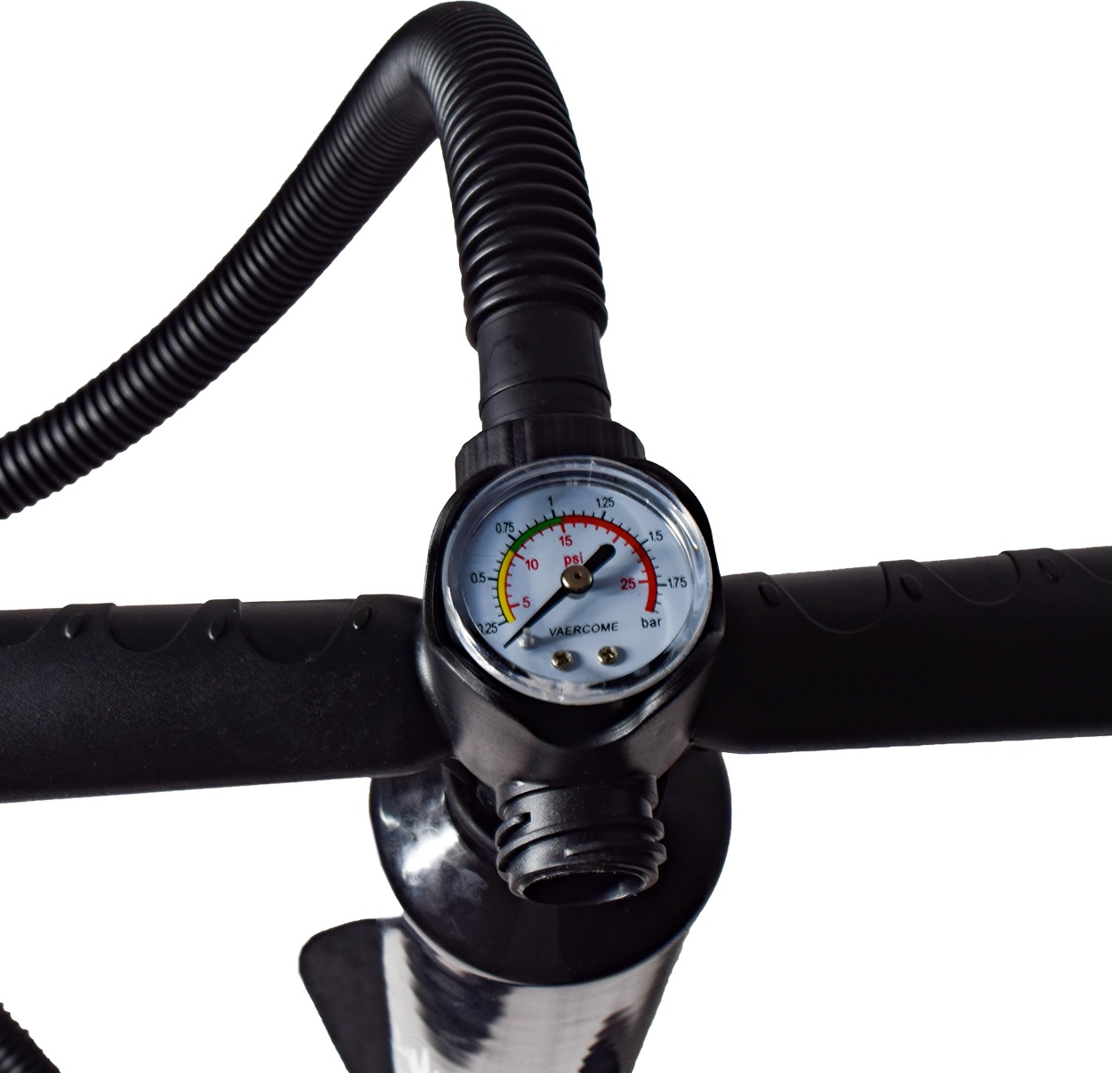 V balení najdete vše, co pro vyražení na vodu můžete potřebovat: trojdílné hliníkové pádlo s nastavitelnou délkou, pumpu s tlakoměrem, bezpečnostní lanko na nohu - leash, ploutev, opravná sada.