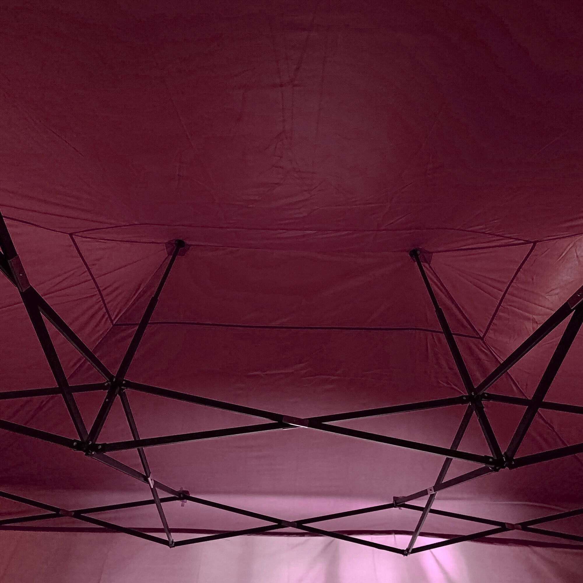 Nohy stánku jsou zakončeny patkami pro ukotvení do země, díky čemuž je konstrukce pevná a stabilní. Složení i rozložení zabere 5–10 minut a obejde se bez použití nářadí. Po skončení akce lze stánek uložit do praktického transportního vaku, který usnadňuje manipulaci a šetří místo při přepravě i skladování.