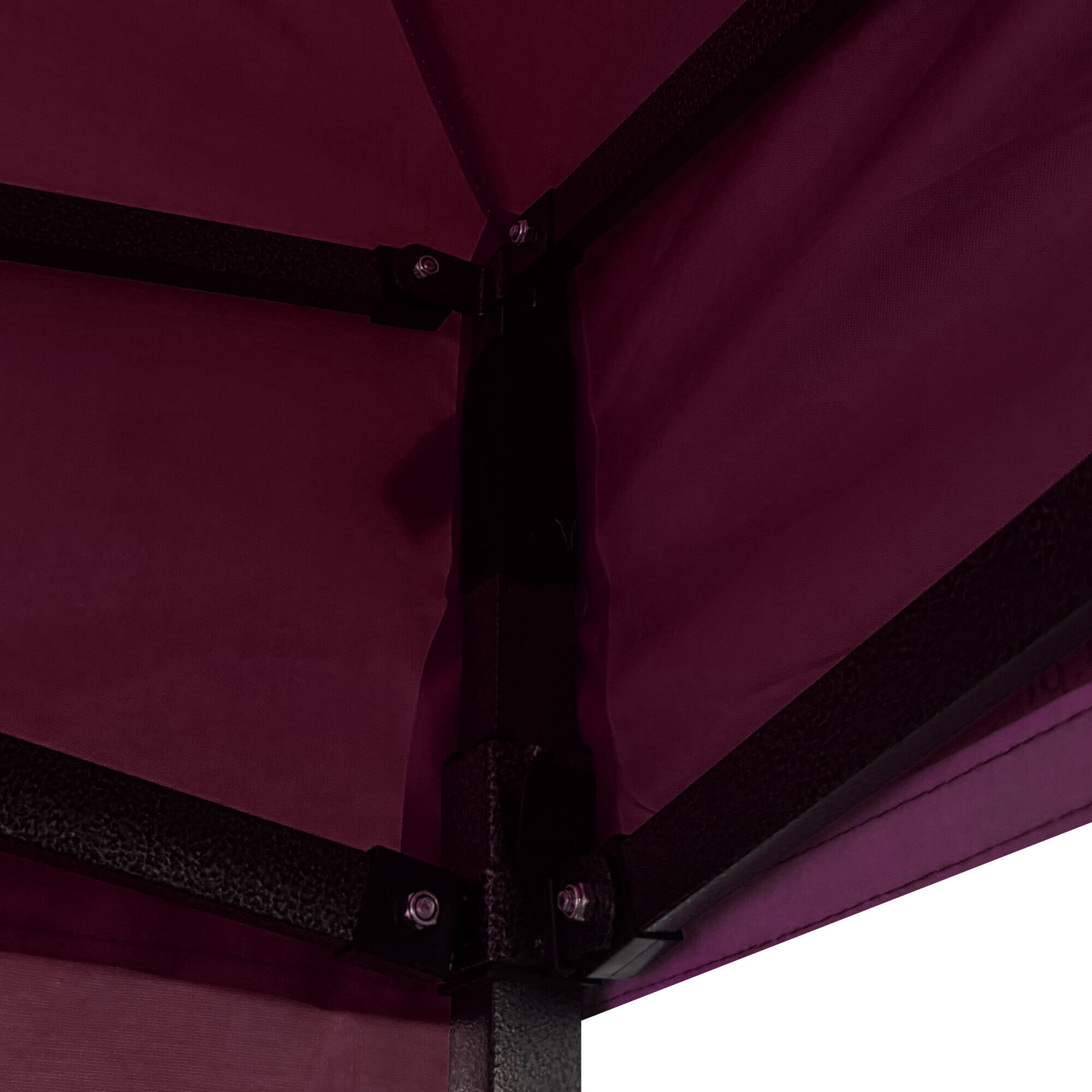 Střecha je vyrobena z odolného materiálu 420D PU Oxford, který chrání před sluncem i deštěm a lze jej jednoduše udržovat ručním praním. Konstrukci tvoří ocelový nůžkový rám s povrchovou úpravou práškovým lakem. Šroubované spoje zajišťují stabilitu a zároveň usnadňují případný servis. Výšku stánku je možné nastavit ve třech stupních od 213 do 290 cm.