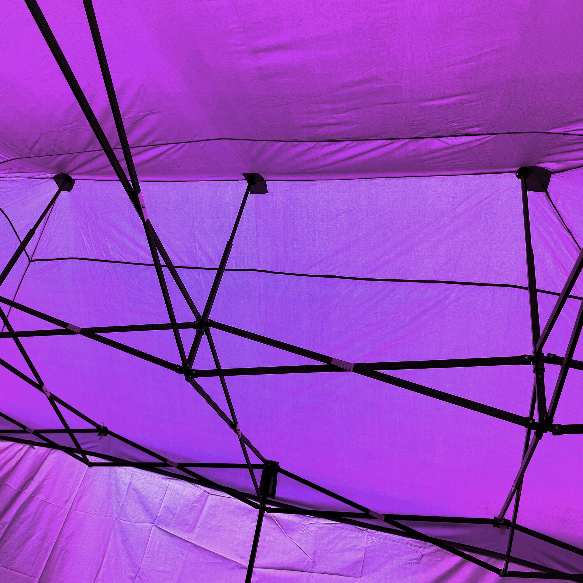 U tohoto modelu je navíc uprostřed konstrukce umístěna dodatečná středová noha, která poskytuje extra oporu celé ploše. Díky tomu je rám stabilní i při větší zátěži a zároveň se zamezuje prohýbání střechy na takto velké ploše. Každá noha je zakončena patkou s možností ukotvení do země, což výrazně zvyšuje celkovou stabilitu stánku i v náročnějších podmínkách.