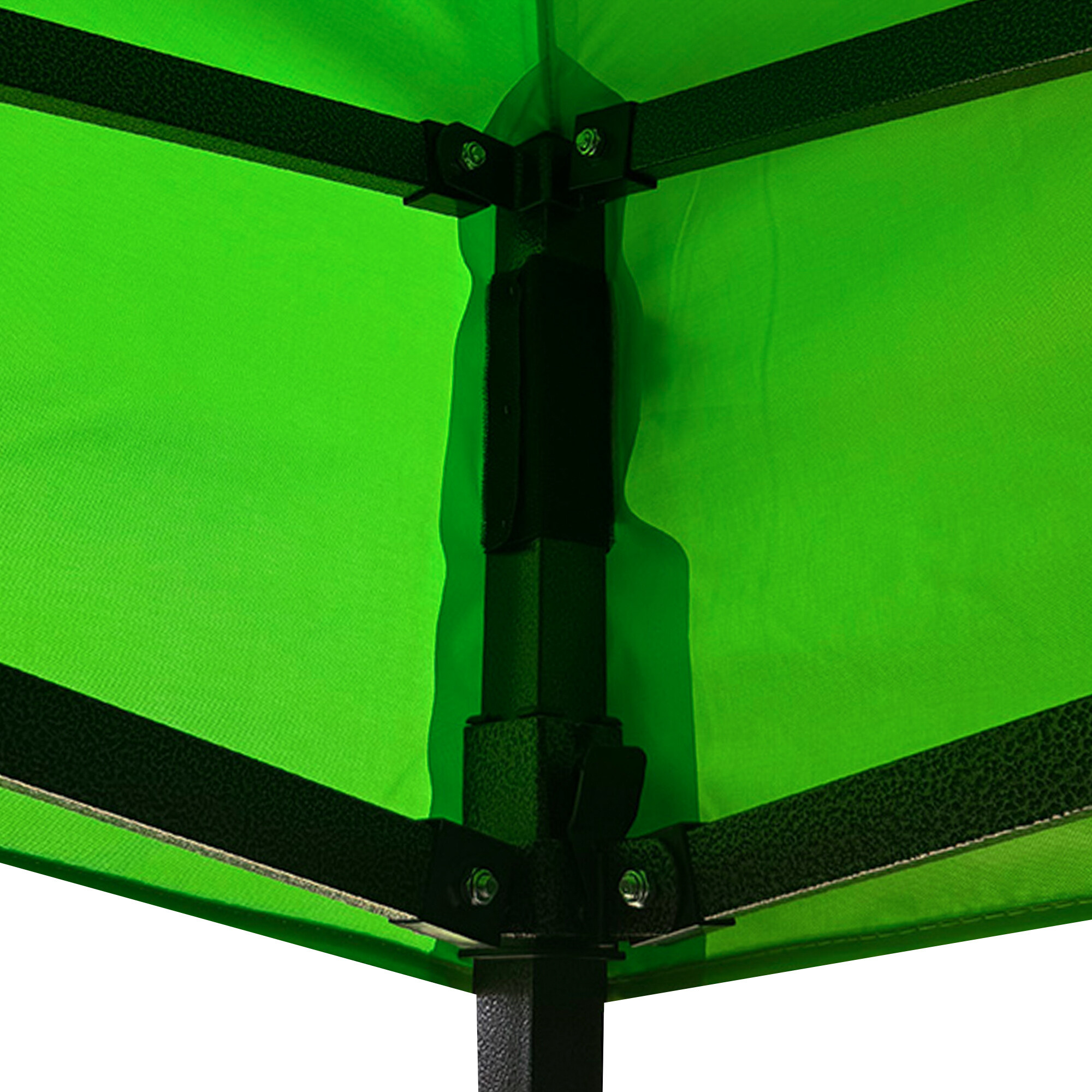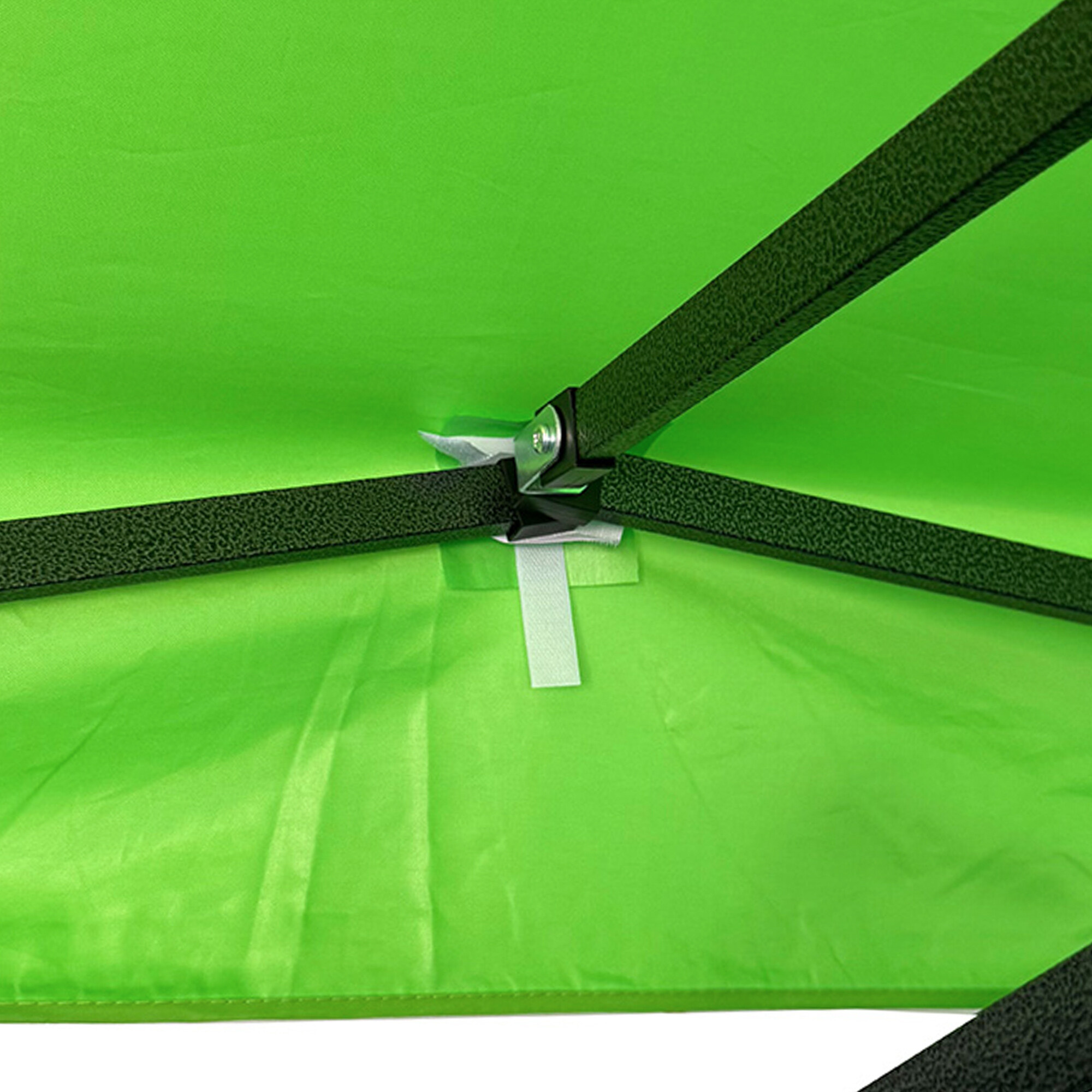 U tohoto modelu je navíc uprostřed konstrukce umístěna dodatečná středová noha, která poskytuje extra oporu celé ploše. Díky tomu je rám stabilní i při větší zátěži a zároveň se zamezuje prohýbání střechy na takto velké ploše. Každá noha je zakončena patkou s možností ukotvení do země, což výrazně zvyšuje celkovou stabilitu stánku i v náročnějších podmínkách.
