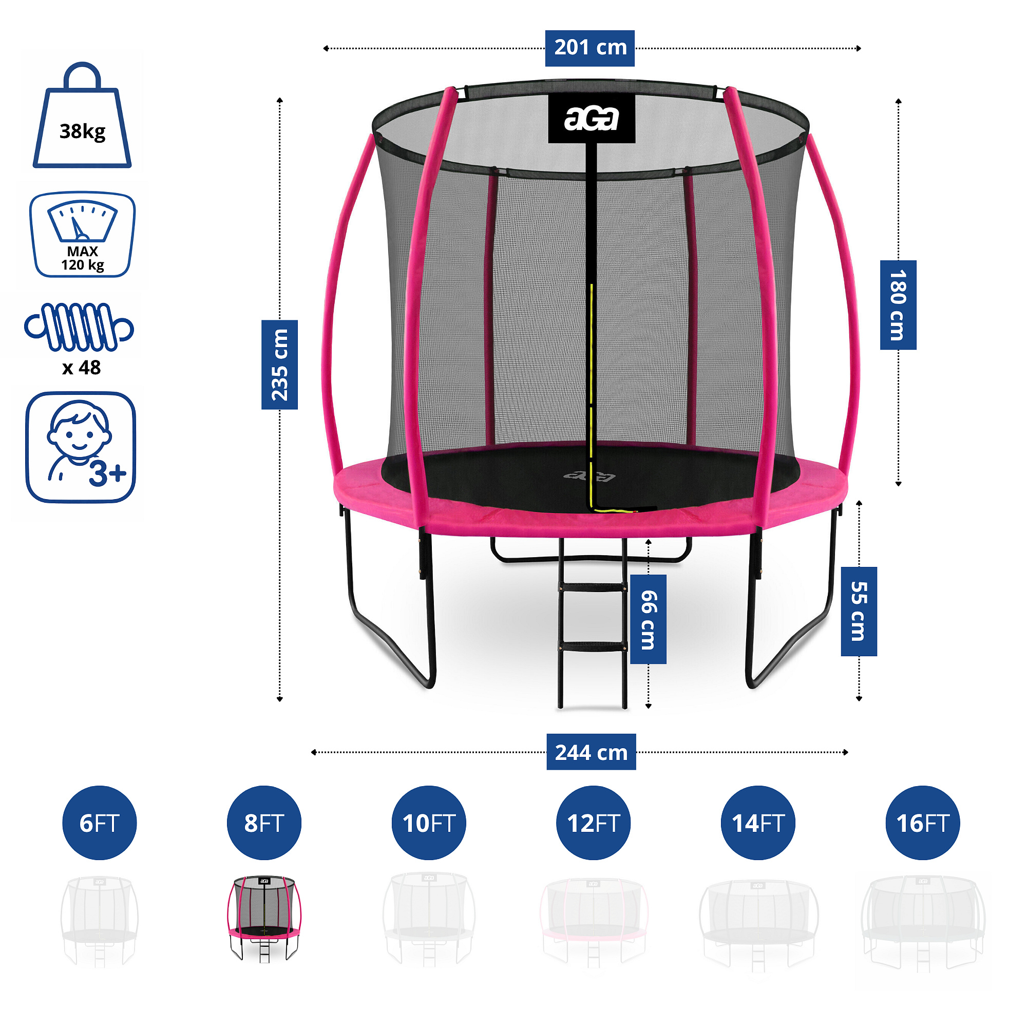 • Průměr trampolíny: 250 cm (8 ft)