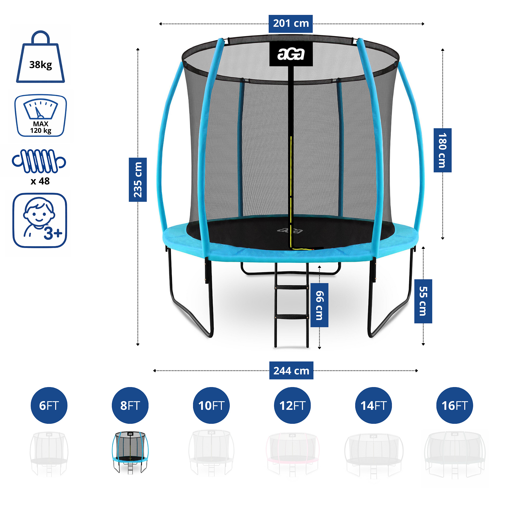 Aga SPORT EXCLUSIVE Trampolína 250 cm Světle modrá + ochranná síť + žebřík