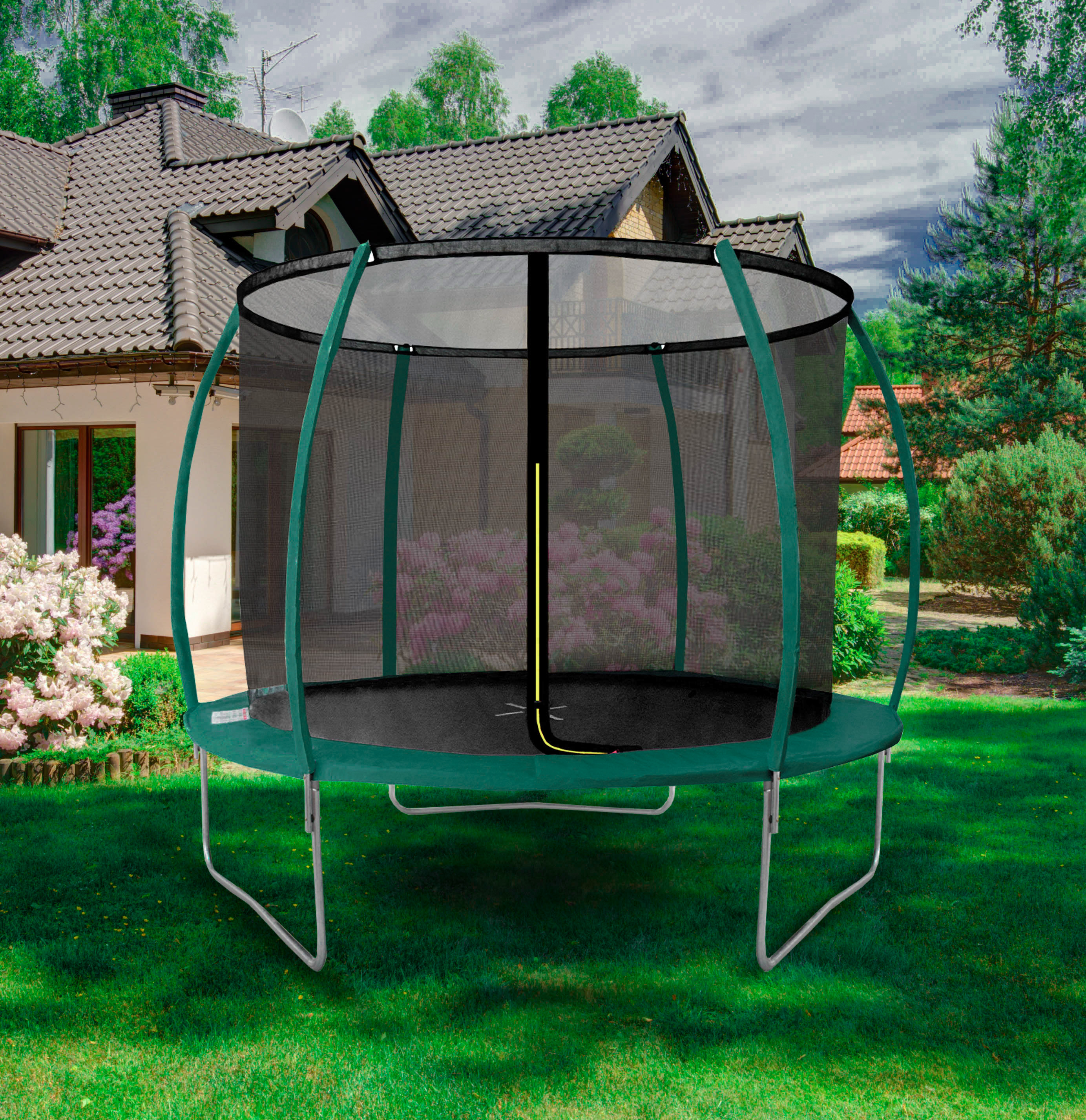 Vstupní otvor je opatřen zipem do tvaru L, tím zajistíte úplné uzavření trampolíny.