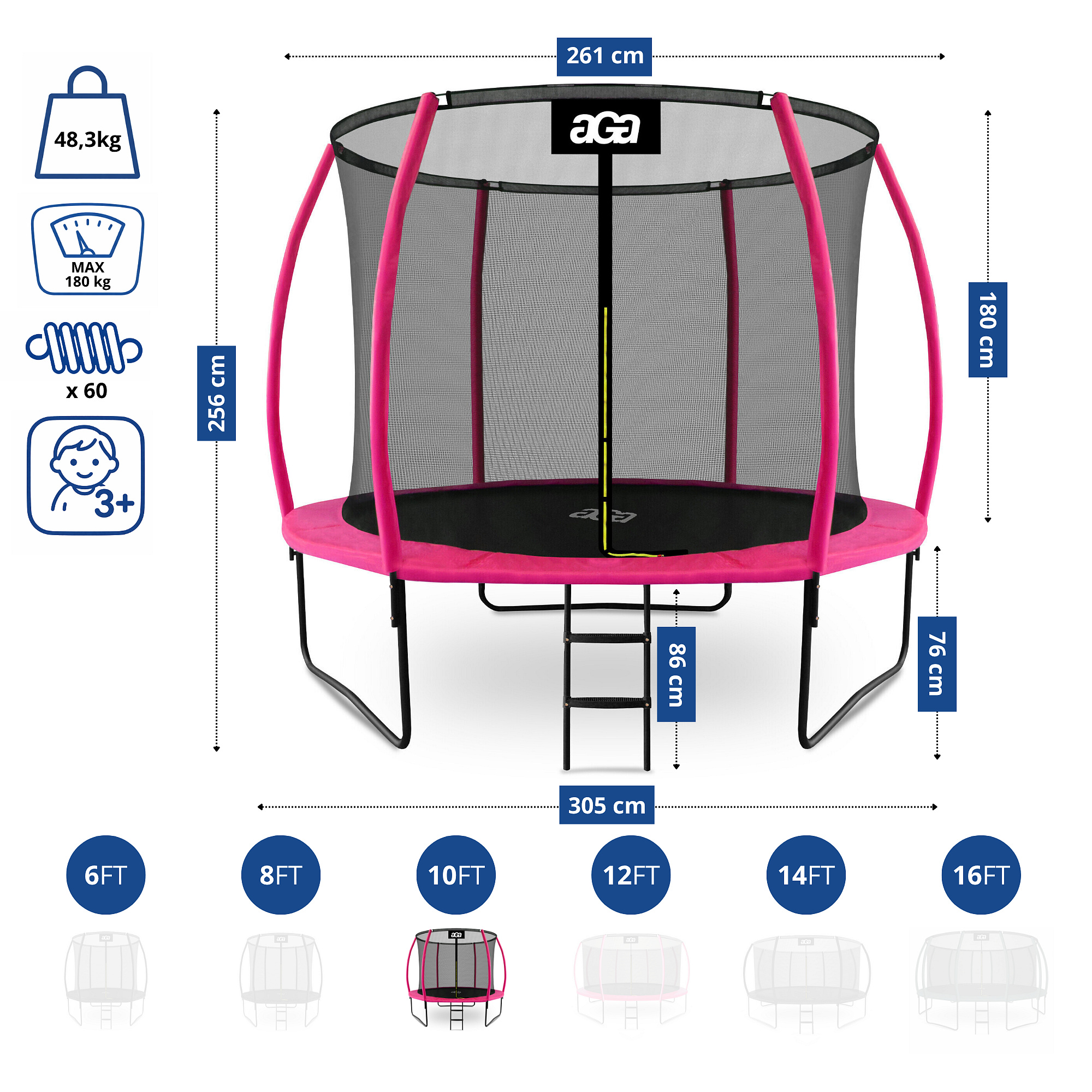 - Průměr trampolíny: 305 cm (10 ft)