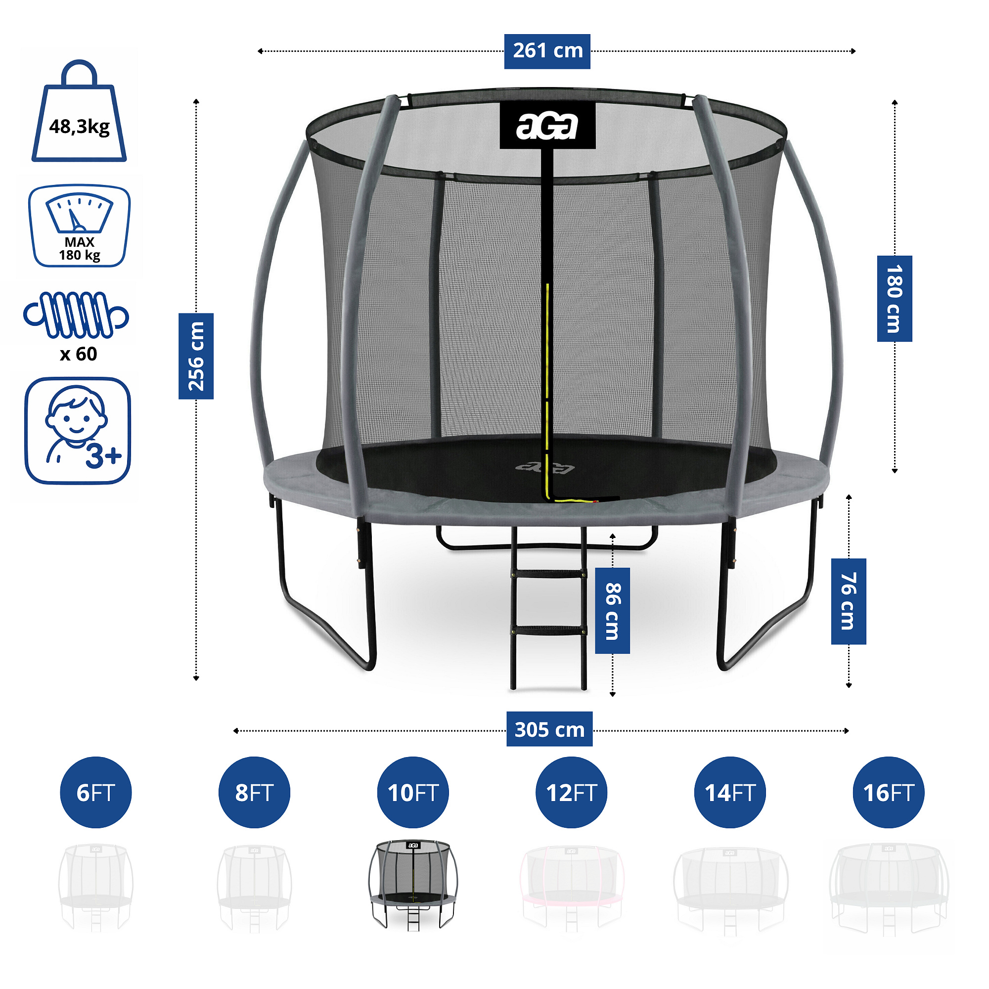 - Průměr trampolíny: 305 cm (10 ft)