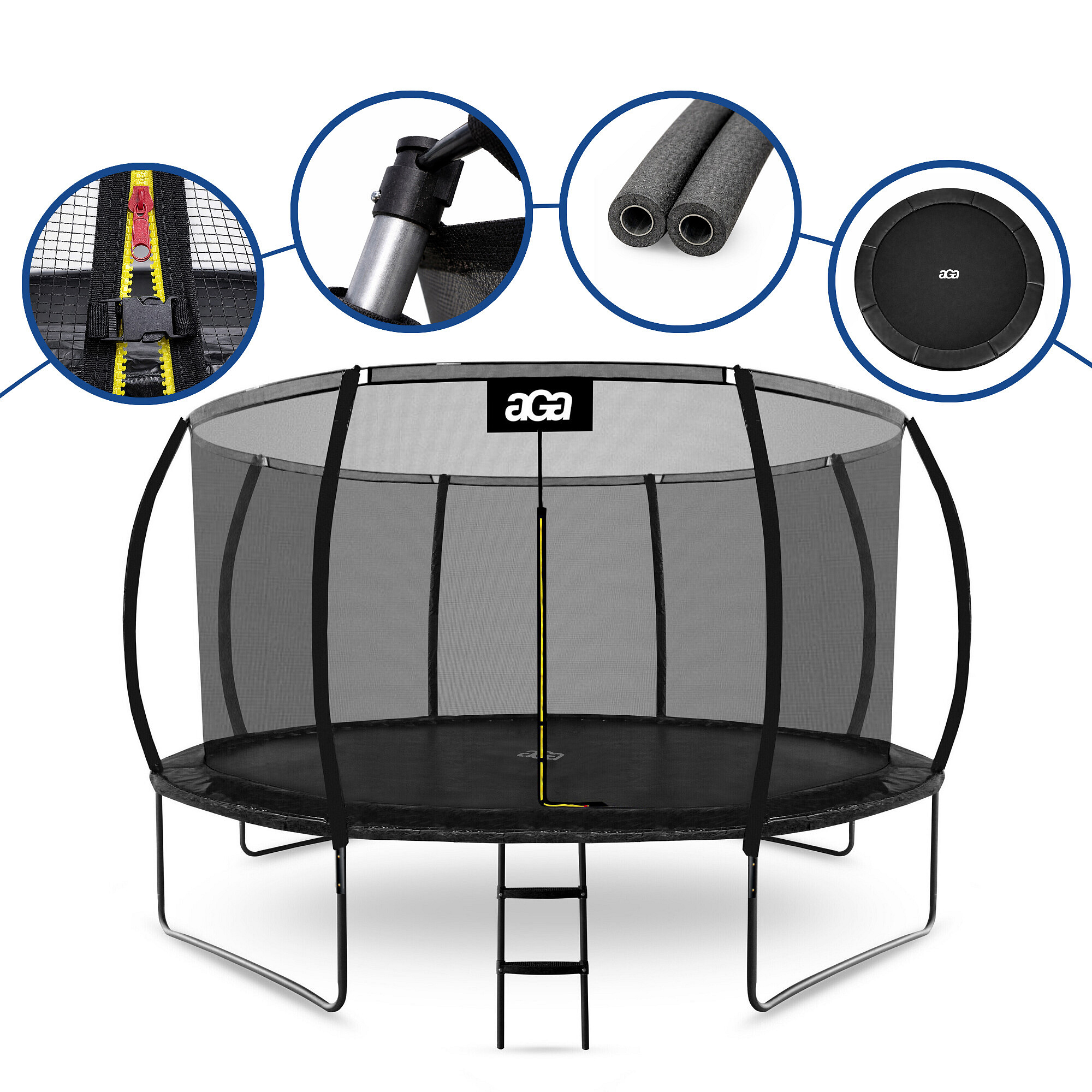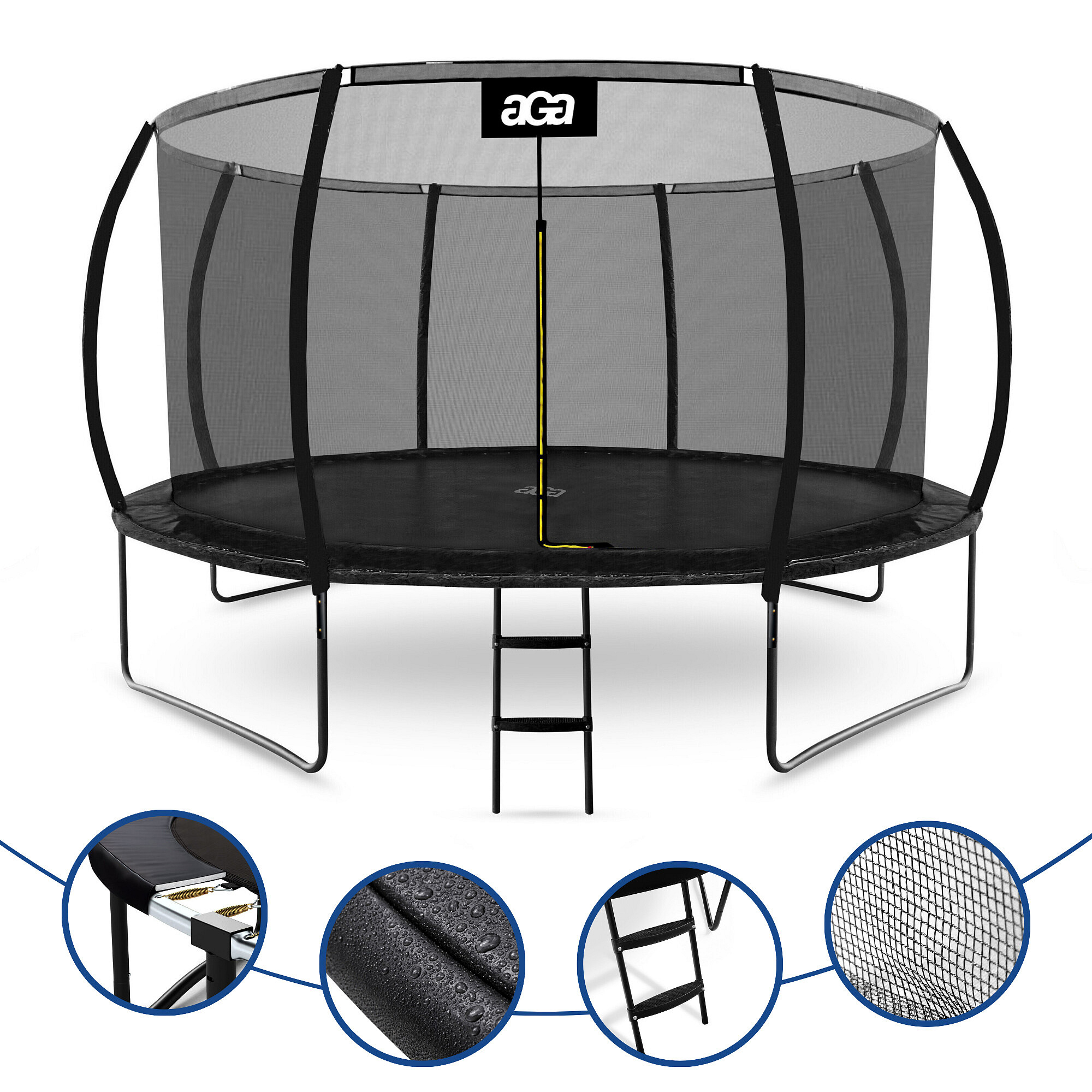 Aga SPORT EXCLUSIVE Trampolína 366 cm Černá + ochranná síť + žebřík