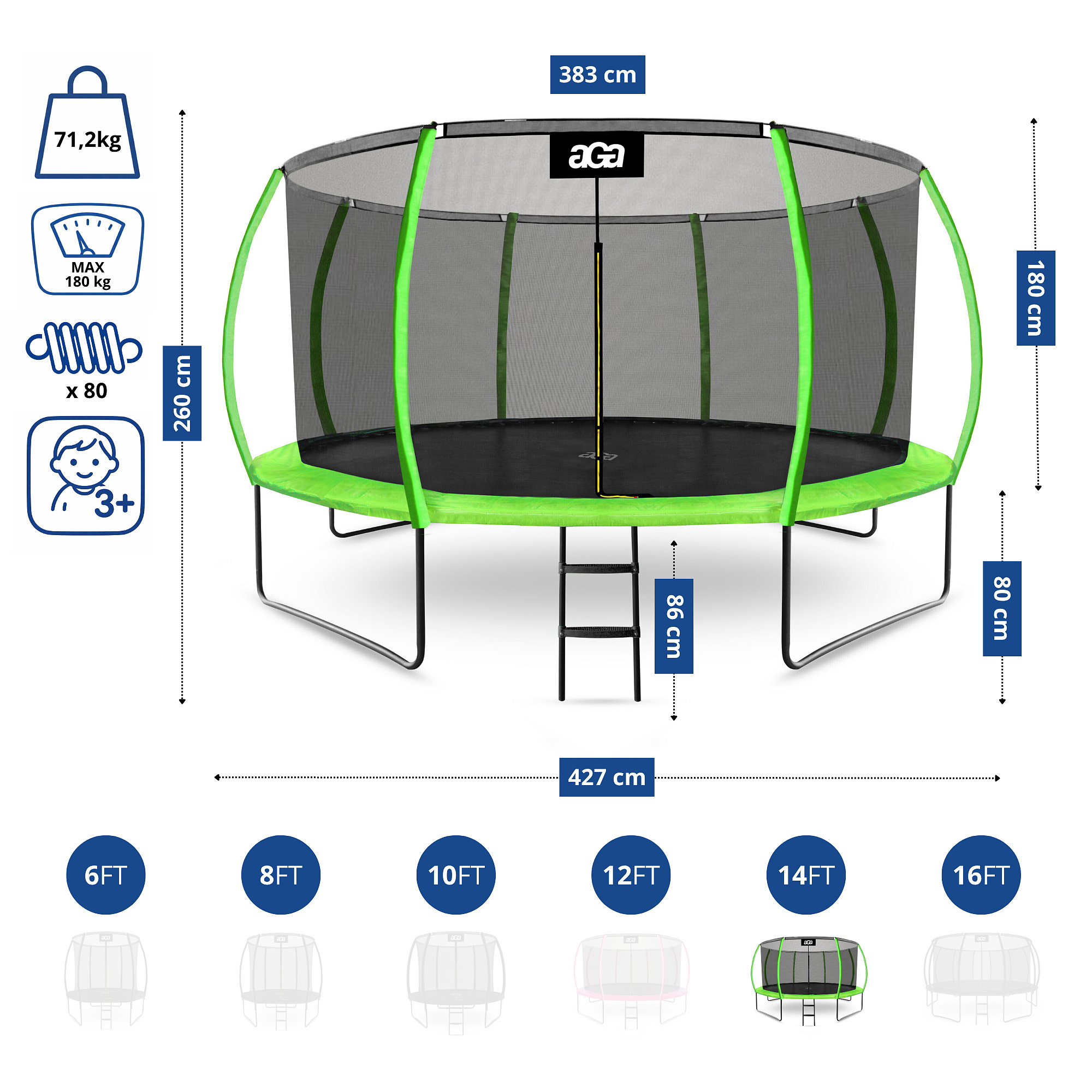 - Průměr trampolíny: 430 cm (14 ft)