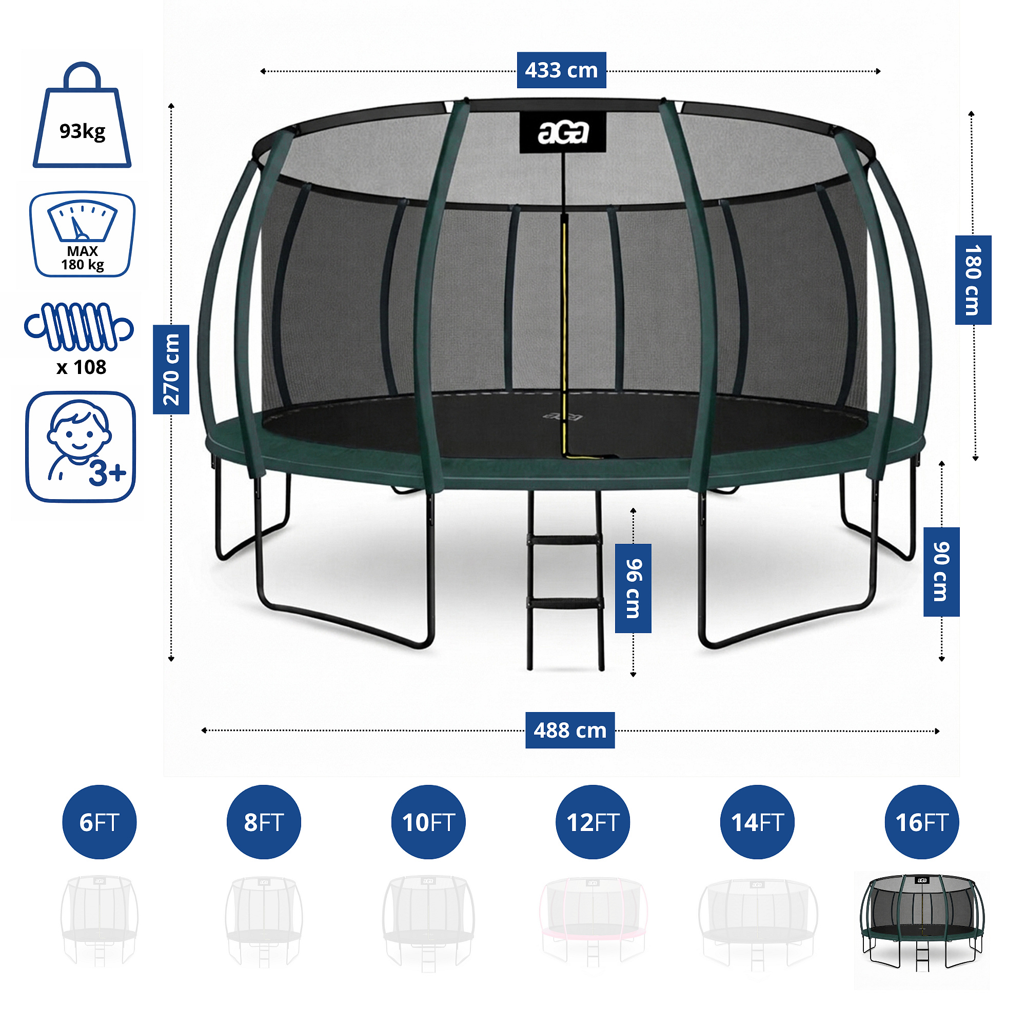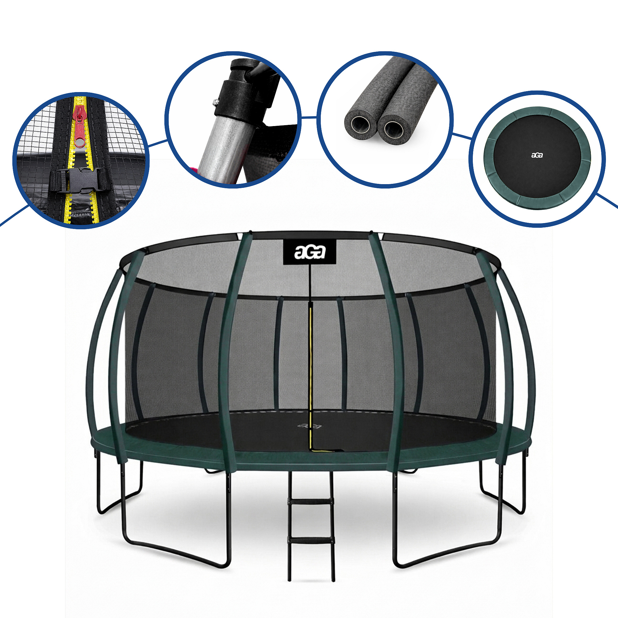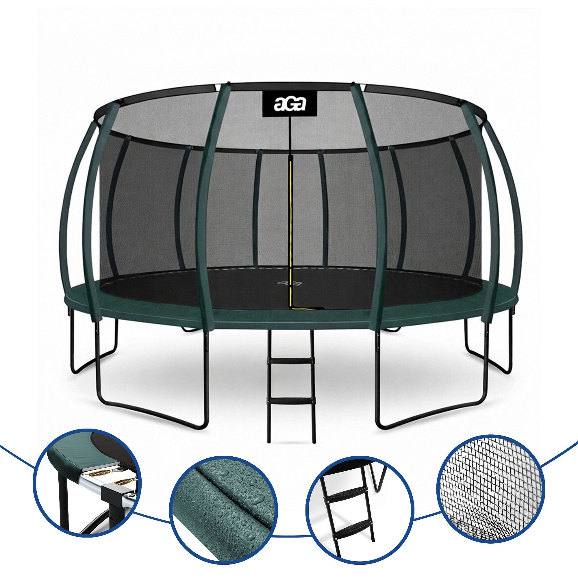 Aga SPORT EXCLUSIVE Trampolína 500 cm Tmavě zelená + ochranná síť + žebřík