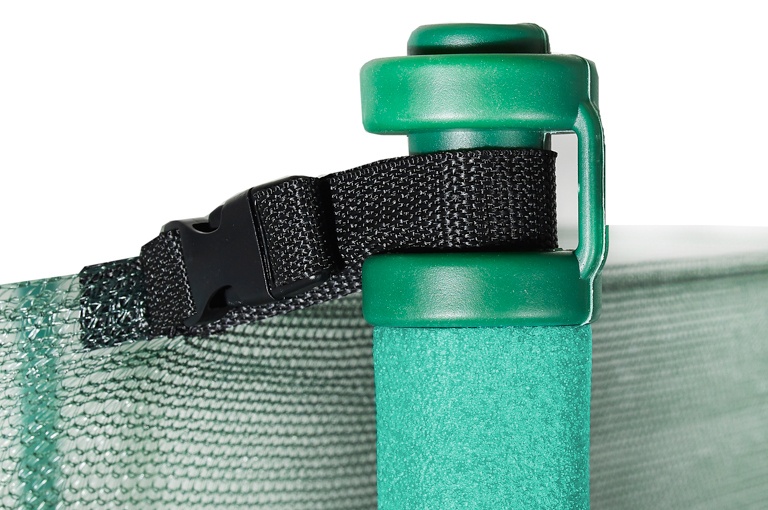 Maximální možnou bezpečnost trampolíny pak zajištuje polstrovaný obvodový pás (kryt pružin), vyrobený z PVC, který překrývá pružiny po celém obvodu trampolíny.