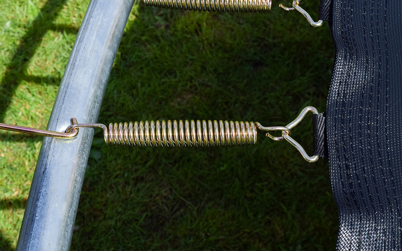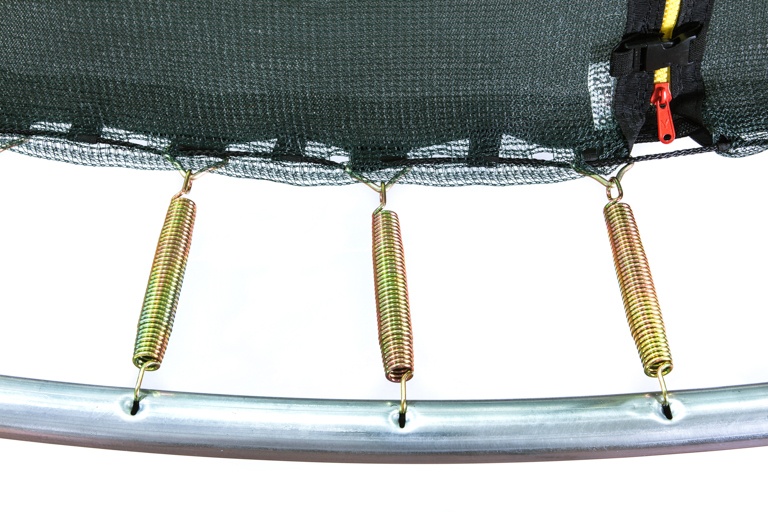 Maximální možnou bezpečnost trampolíny pak zajištuje polstrovaný obvodový pás (kryt pružin), vyrobený z PVC, který překrývá pružiny po celém obvodu trampolíny.