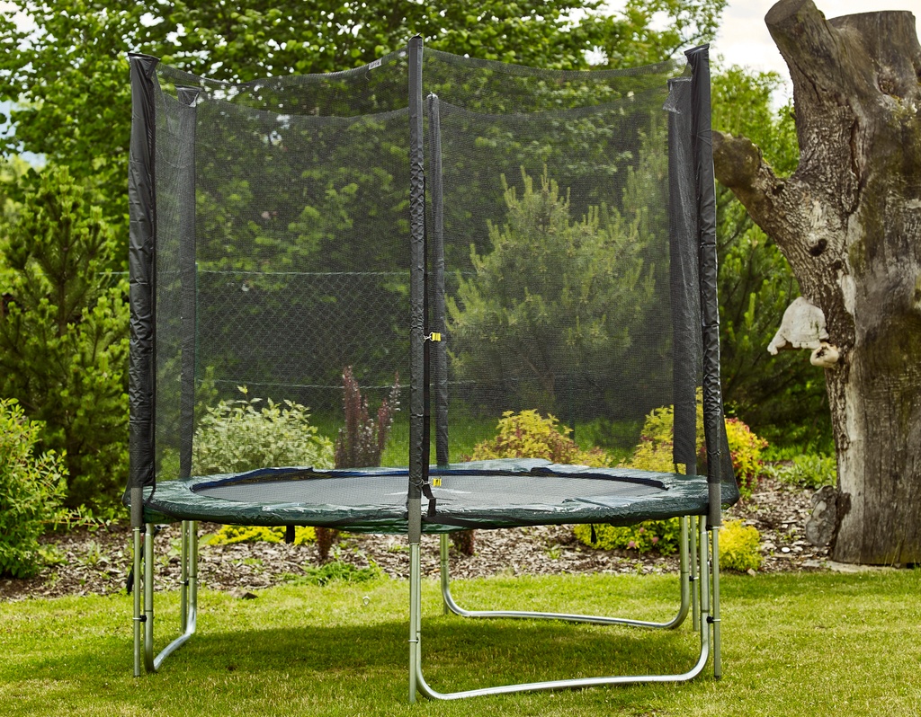 Maximální možnou bezpečnost trampolíny pak zajištuje polstrovaný obvodový pás (kryt pružin), vyrobený z PVC, který překrývá pružiny po celém obvodu trampolíny.
