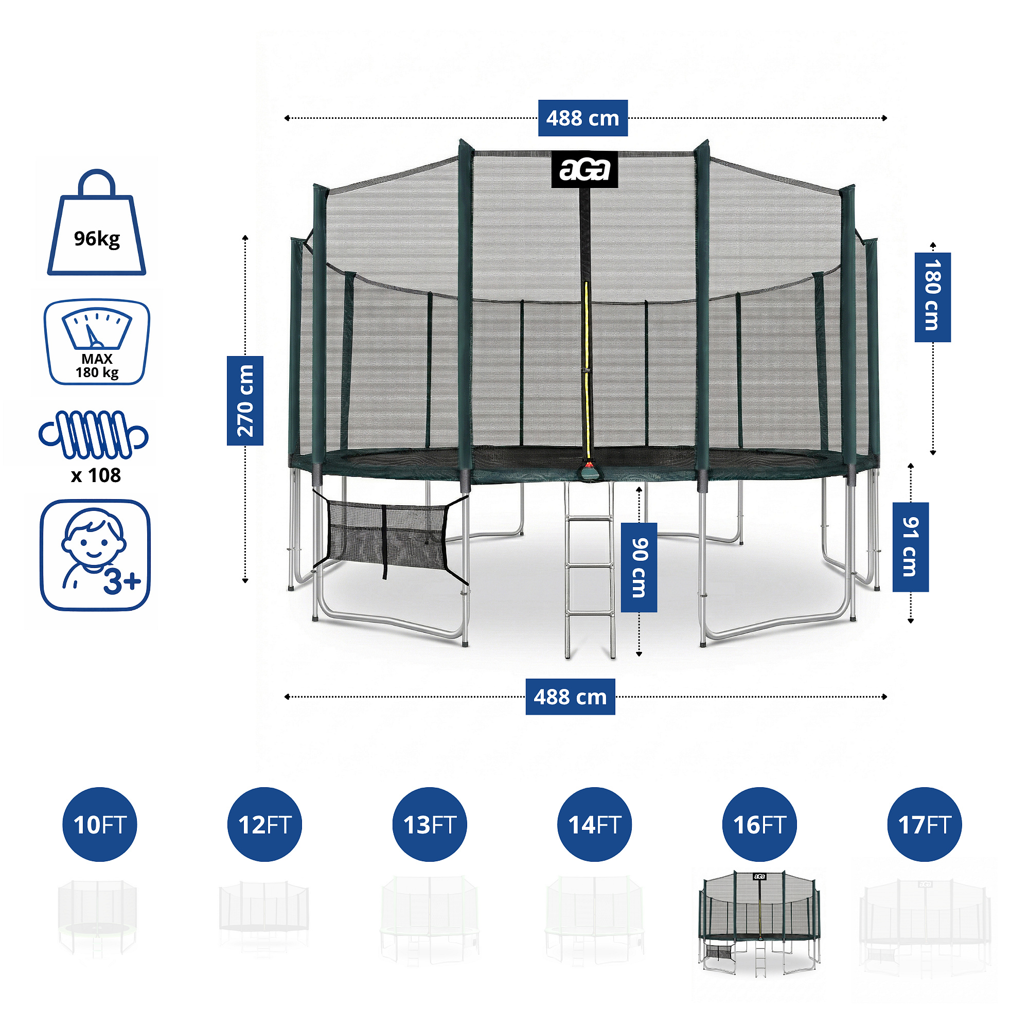 - Průměr trampolíny: 488-500 cm (16 ft)