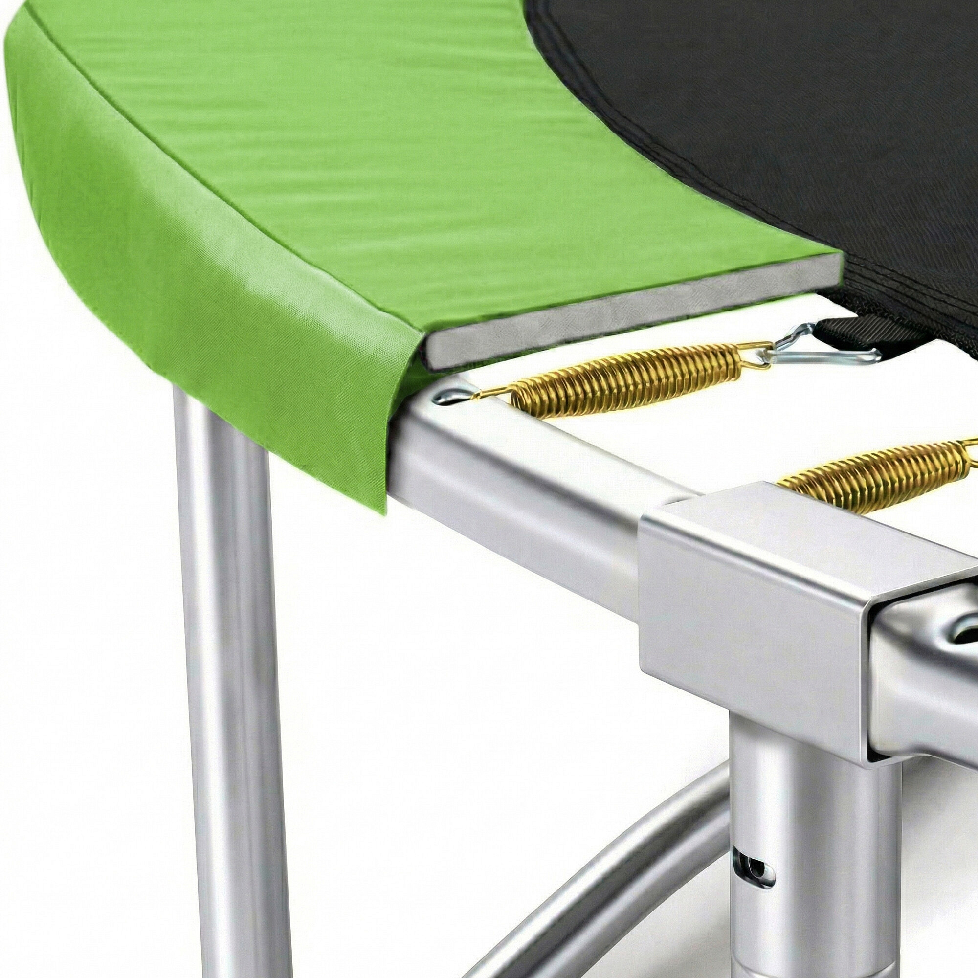 Maximální možnou bezpečnost trampolíny pak zajištuje polstrovaný obvodový pás (kryt pružin), vyrobený z PVC, který překrývá pružiny po celém obvodu trampolíny.