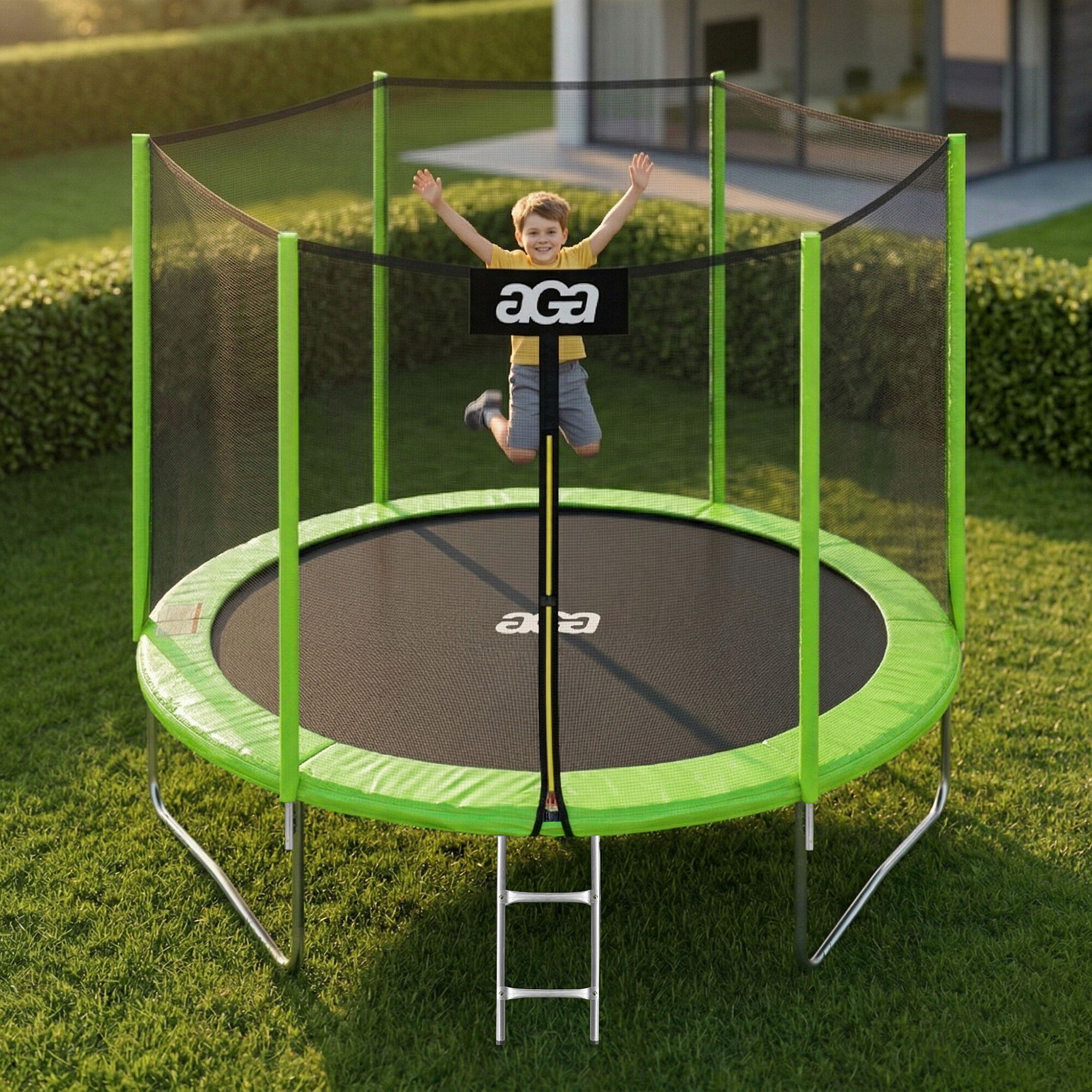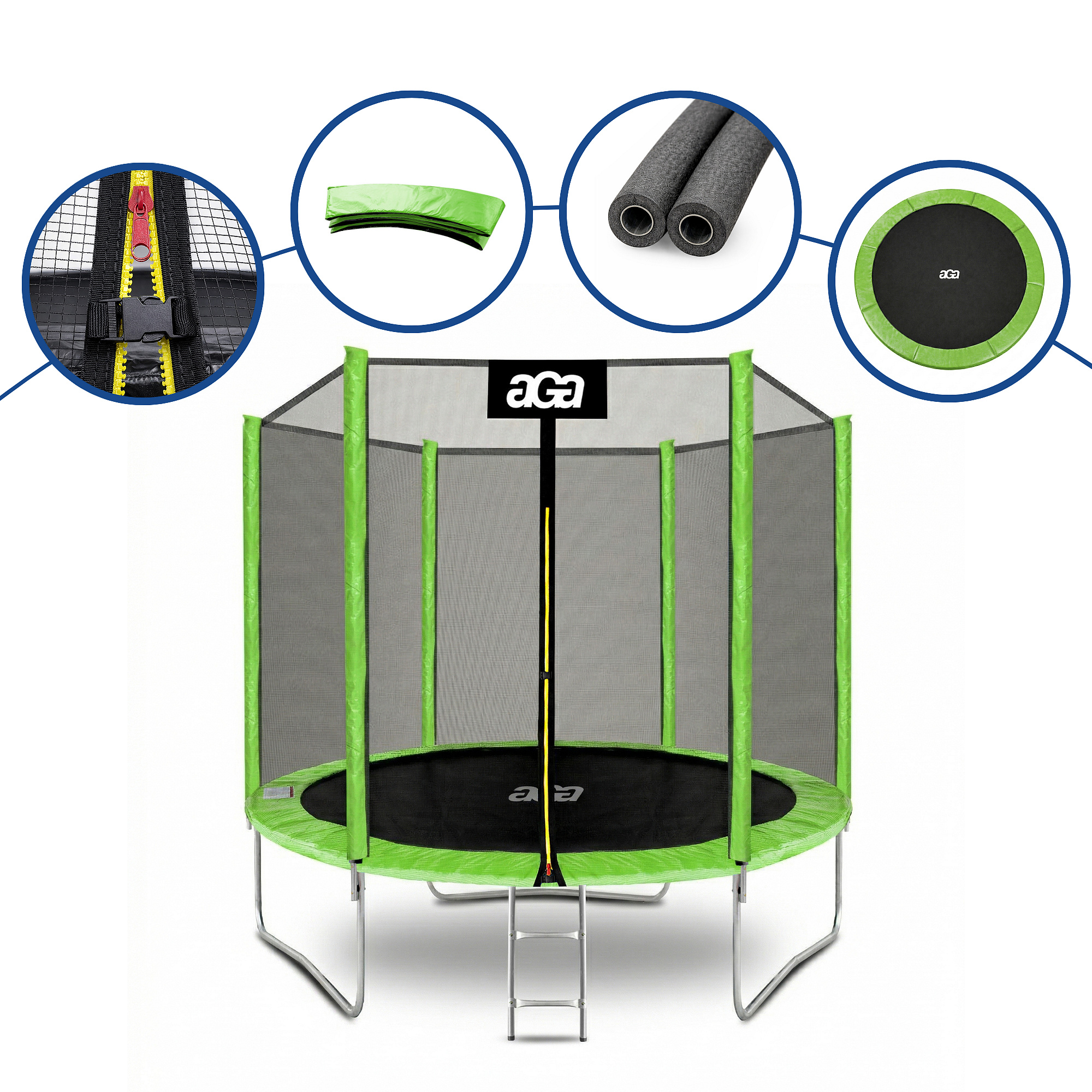 Specifikace trampolíny Aga SPORT TOP 250 cm (8 ft) s ochrannou sítí Light Green.