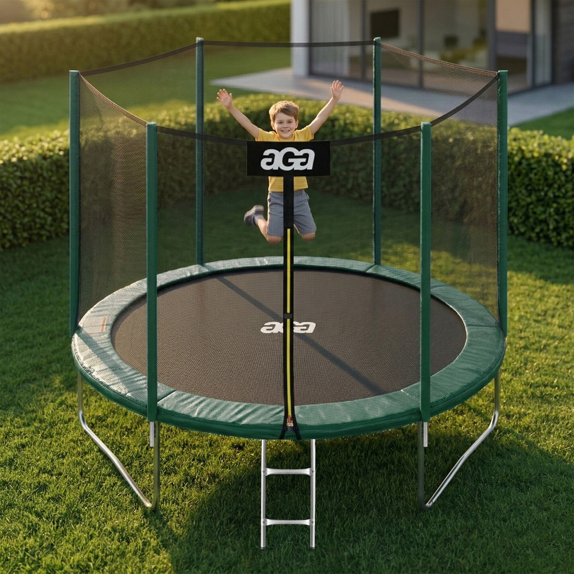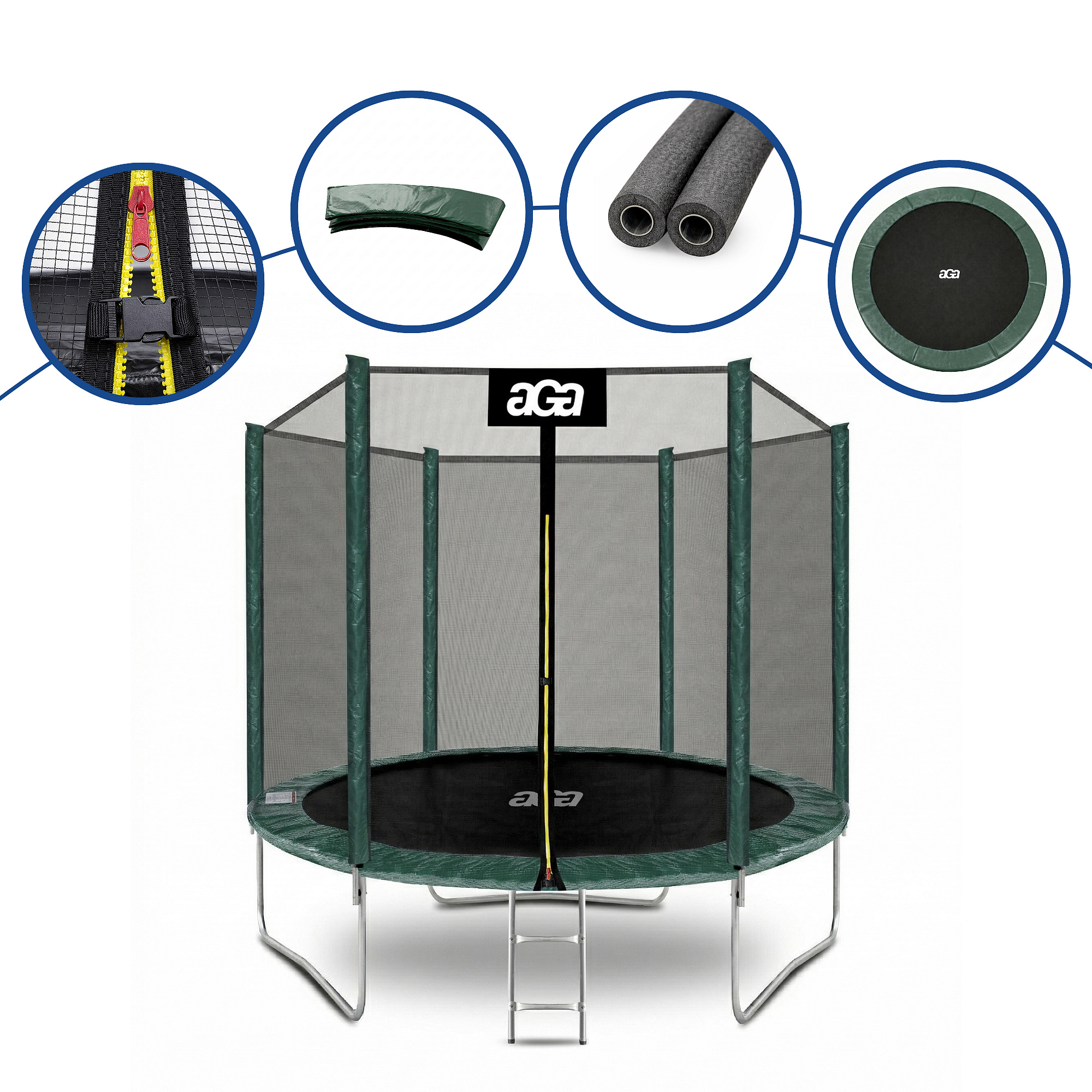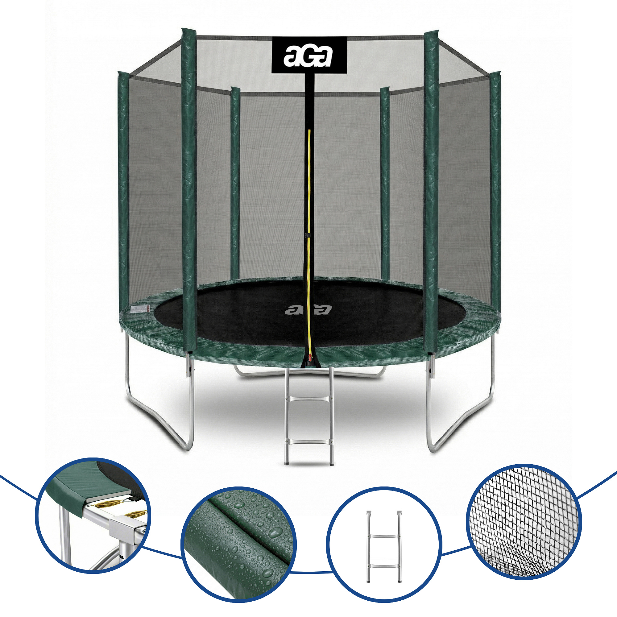 Specifikace trampolíny Aga SPORT TOP 250 cm (8 ft) s ochrannou sítí Dark Green.