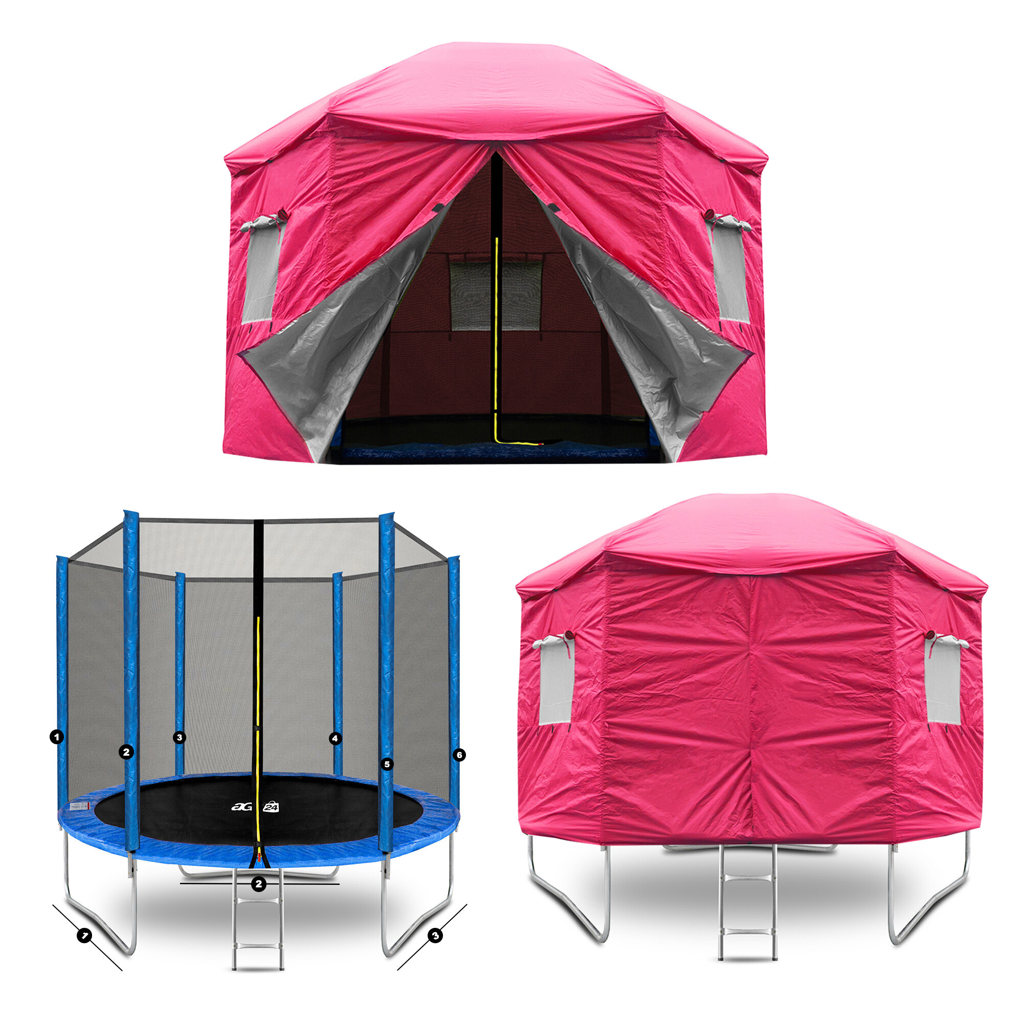 A v době kdy trampolína není aktivně využívána, pomáhá stan chránit odrazovou plochu před znečištěním a UV zářením.