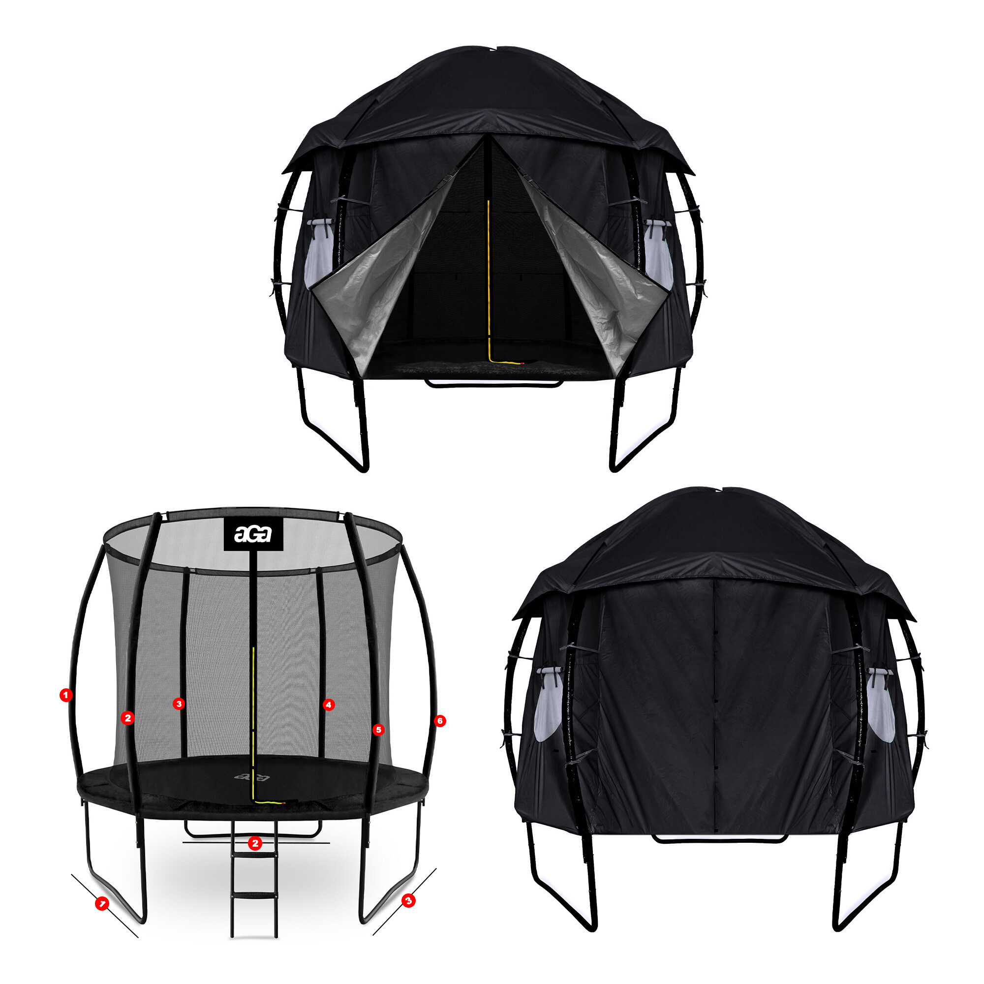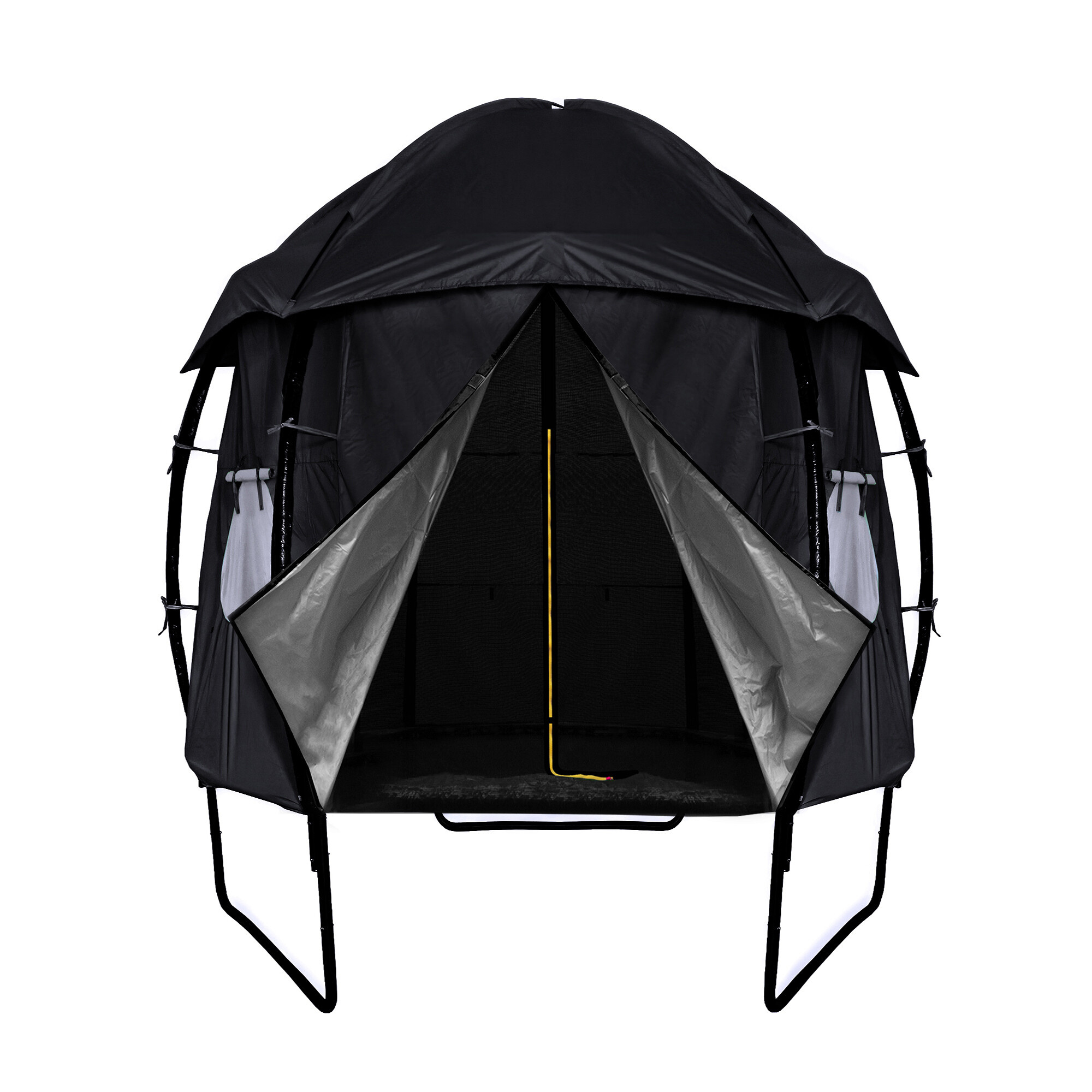 A v době kdy trampolína není aktivně využívána, pomáhá stan chránit odrazovou plochu před znečištěním a UV zářením.