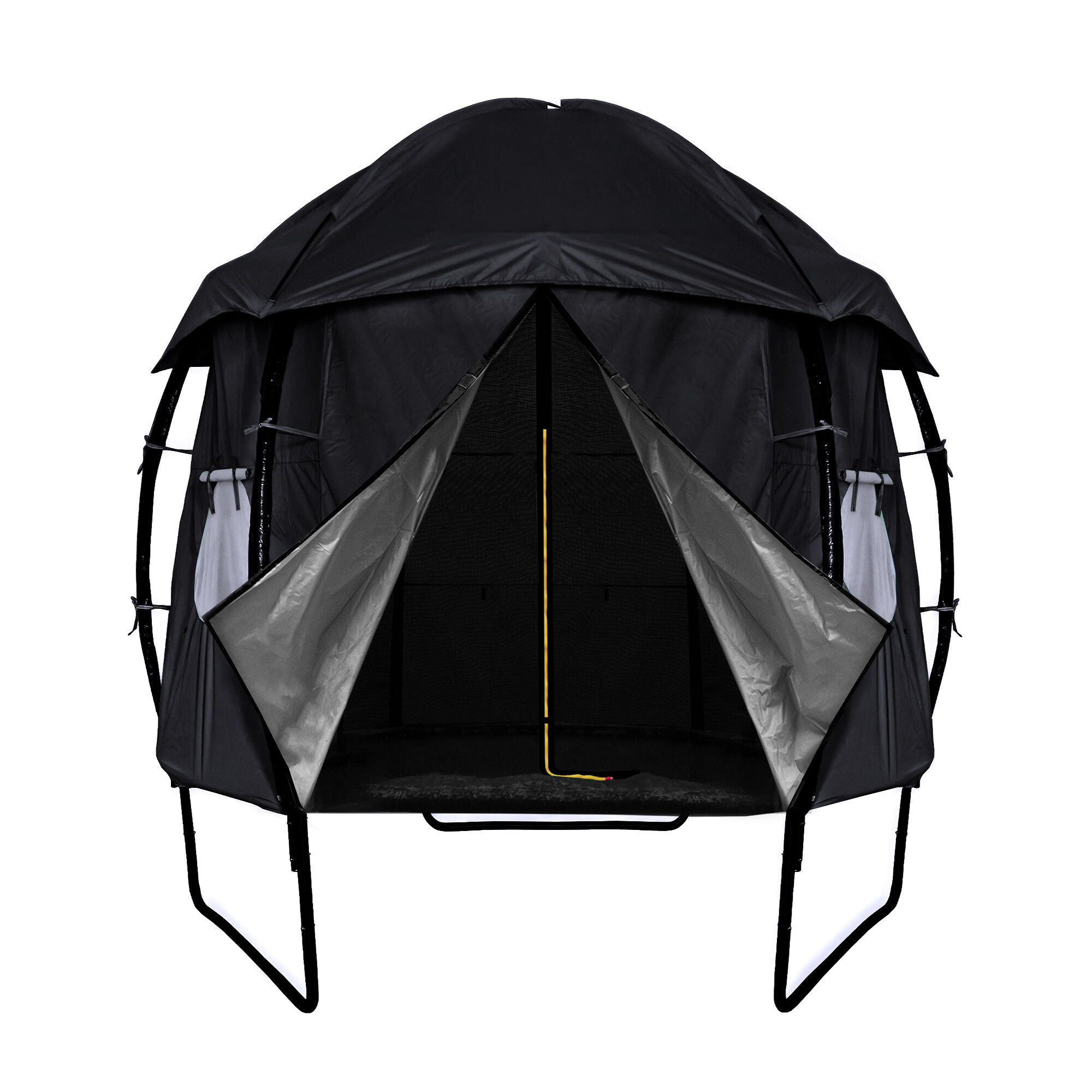 A v době kdy trampolína není aktivně využívána, pomáhá stan chránit odrazovou plochu před znečištěním a UV zářením.