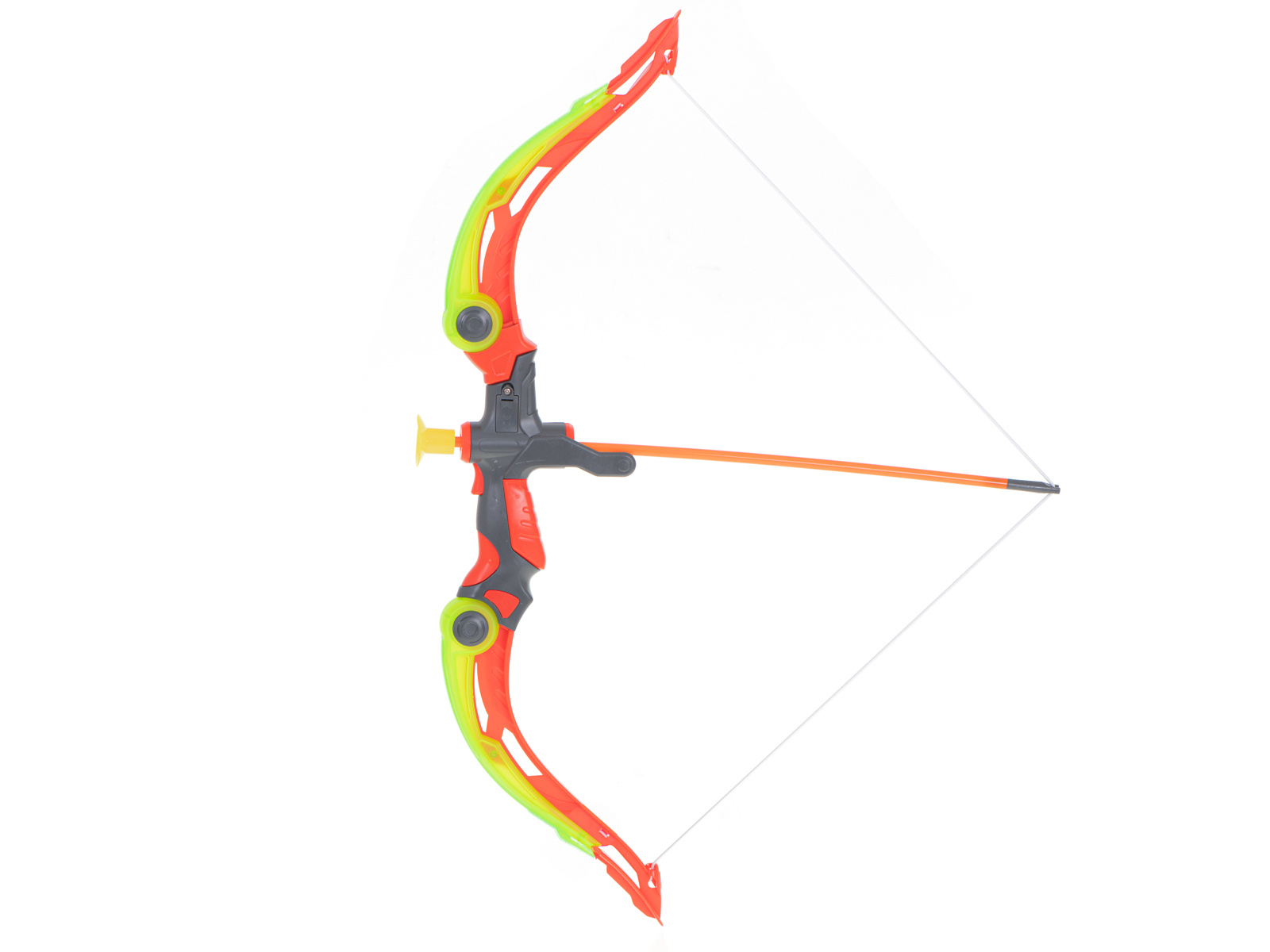 Hračka luk je ideální zábava pro děti, které sní o tom, že se stanou lukostřelci. Luk je napnut gumou a každý šíp je zakončen gumovým hrotem.