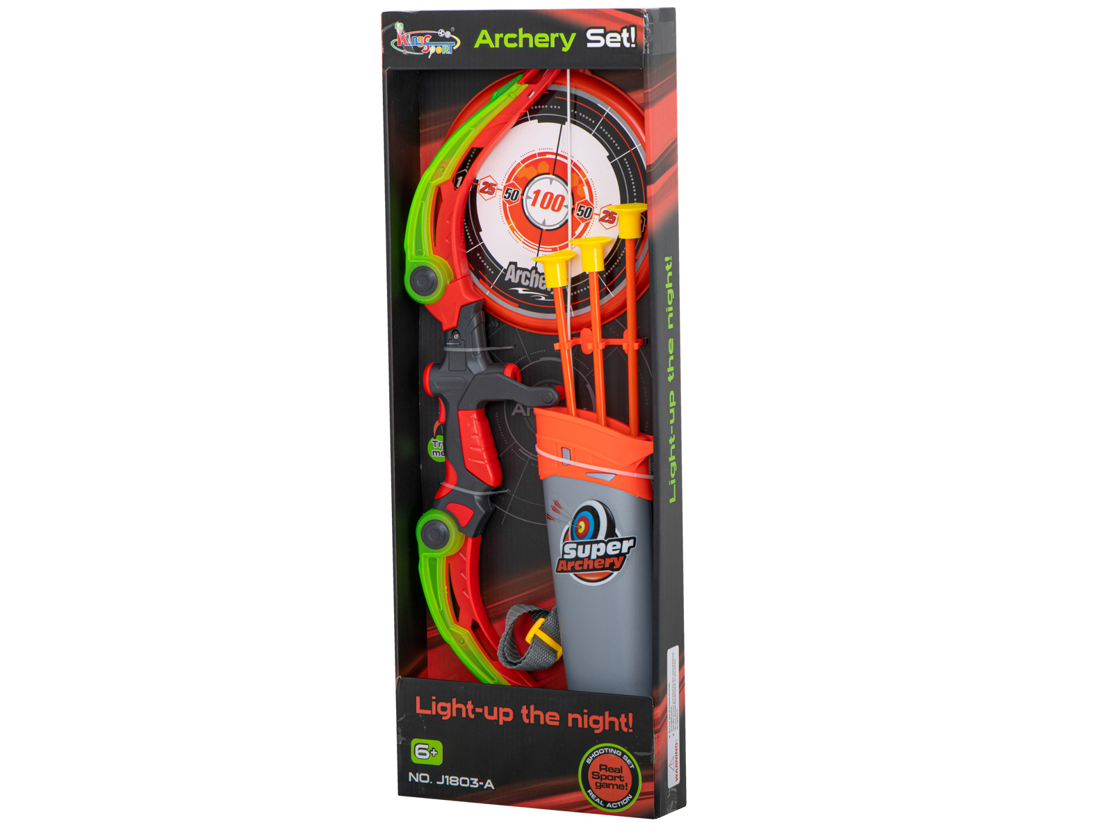 Střelecká sada - luk se šípy a terč. Ideální pro malé bojovníky. Hra procvičuje reflexy a přesnost. Obsahuje: terč, luk, toulec se šípy, 3 šípy s přísavkami. Napájení: 3x AG13 (součástí dodávky). St. kotouč: 20 cm. Dlouhá. luk: 53 cm.Celý popis